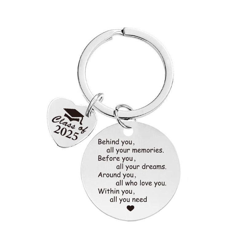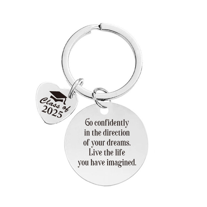 아마존 국경 2025 새로운 졸업 시즌 기념품 스테인레스 스틸 키 체인 레터링 금속 키 체인 도매스토어 가기