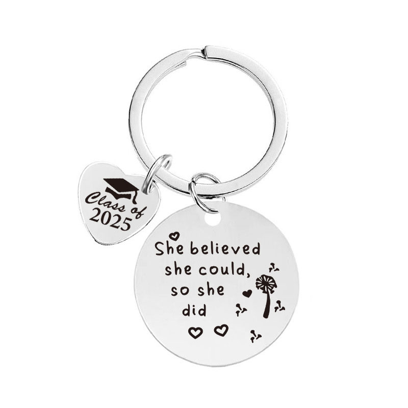 아마존 국경 2025 새로운 졸업 시즌 기념품 스테인레스 스틸 키 체인 레터링 금속 키 체인 도매
