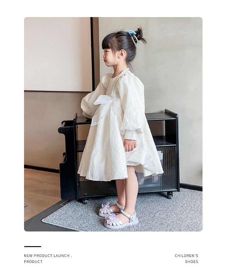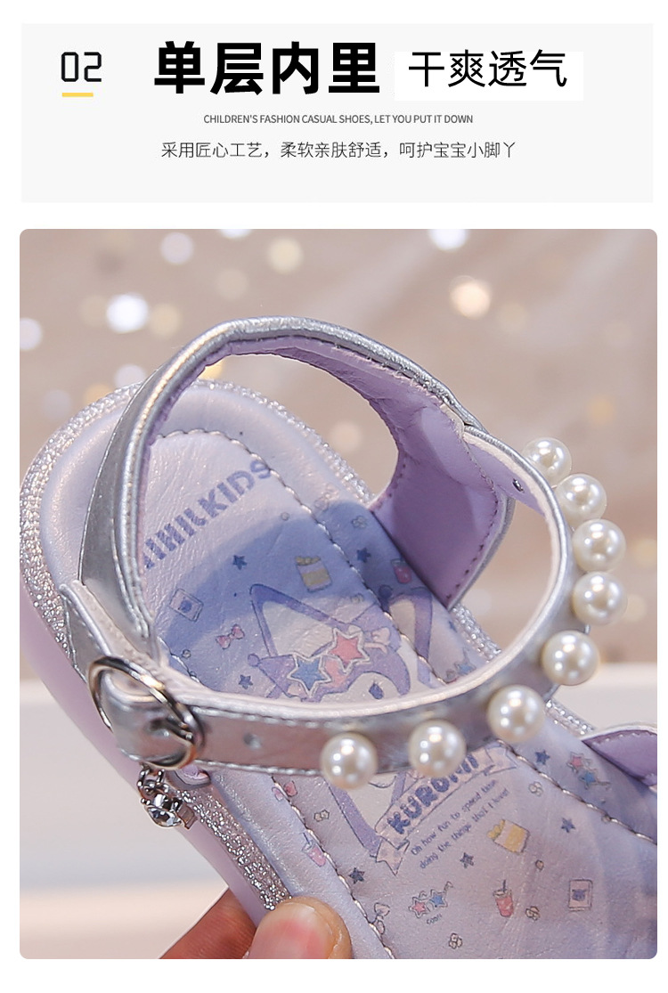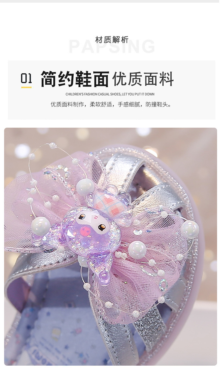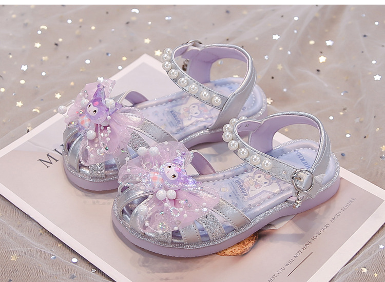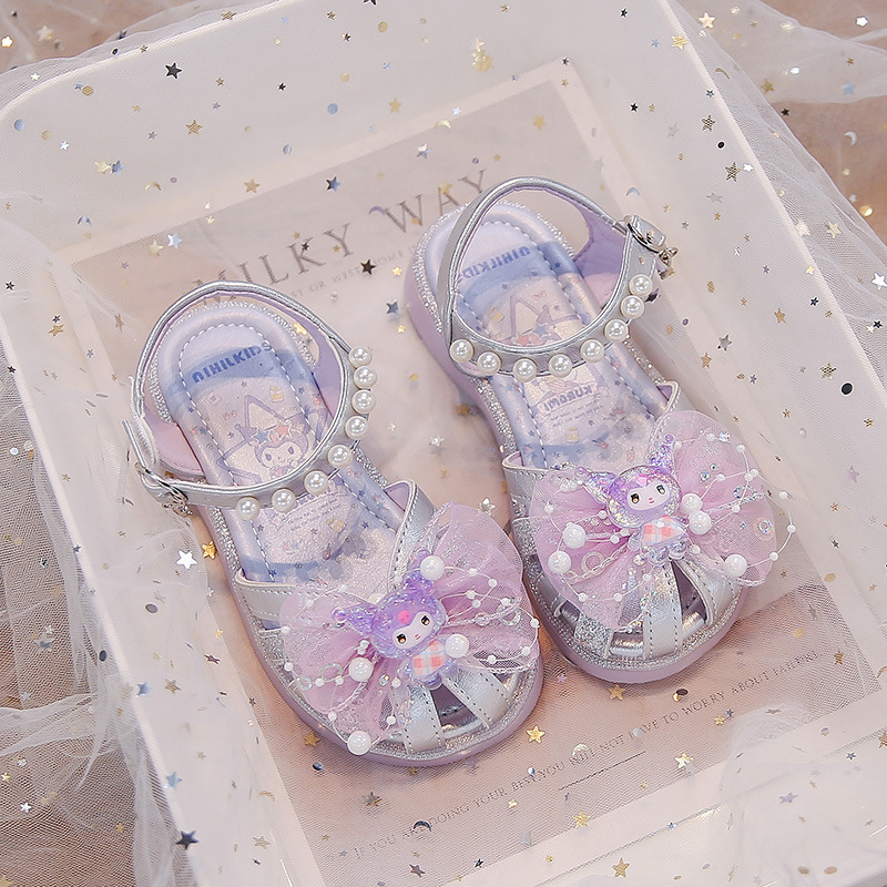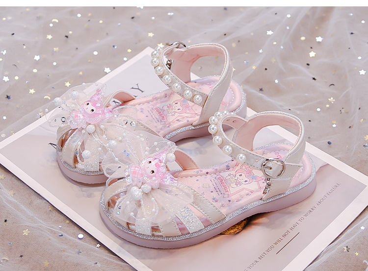 소녀 발가락 샌들 2025 여름 새로운 도착 메쉬 활 귀여운 만화 인형 진주 중공 샌들스토어 가기
