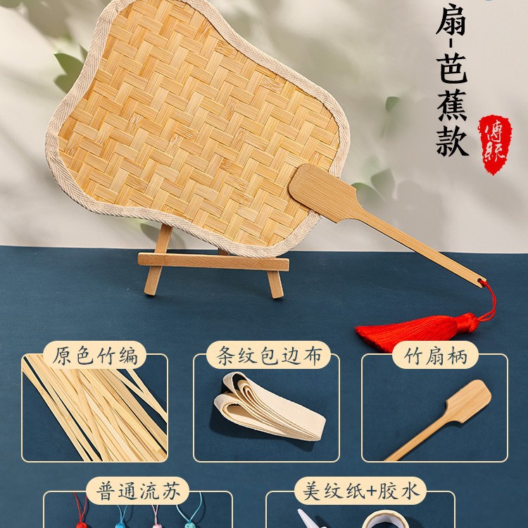 대나무로 짠 소재 패키지, 무형문화유산 수제 부채, 중국풍 문화, 어린이로 짠 밀짚부채, 듀나우 축제스토어 가기