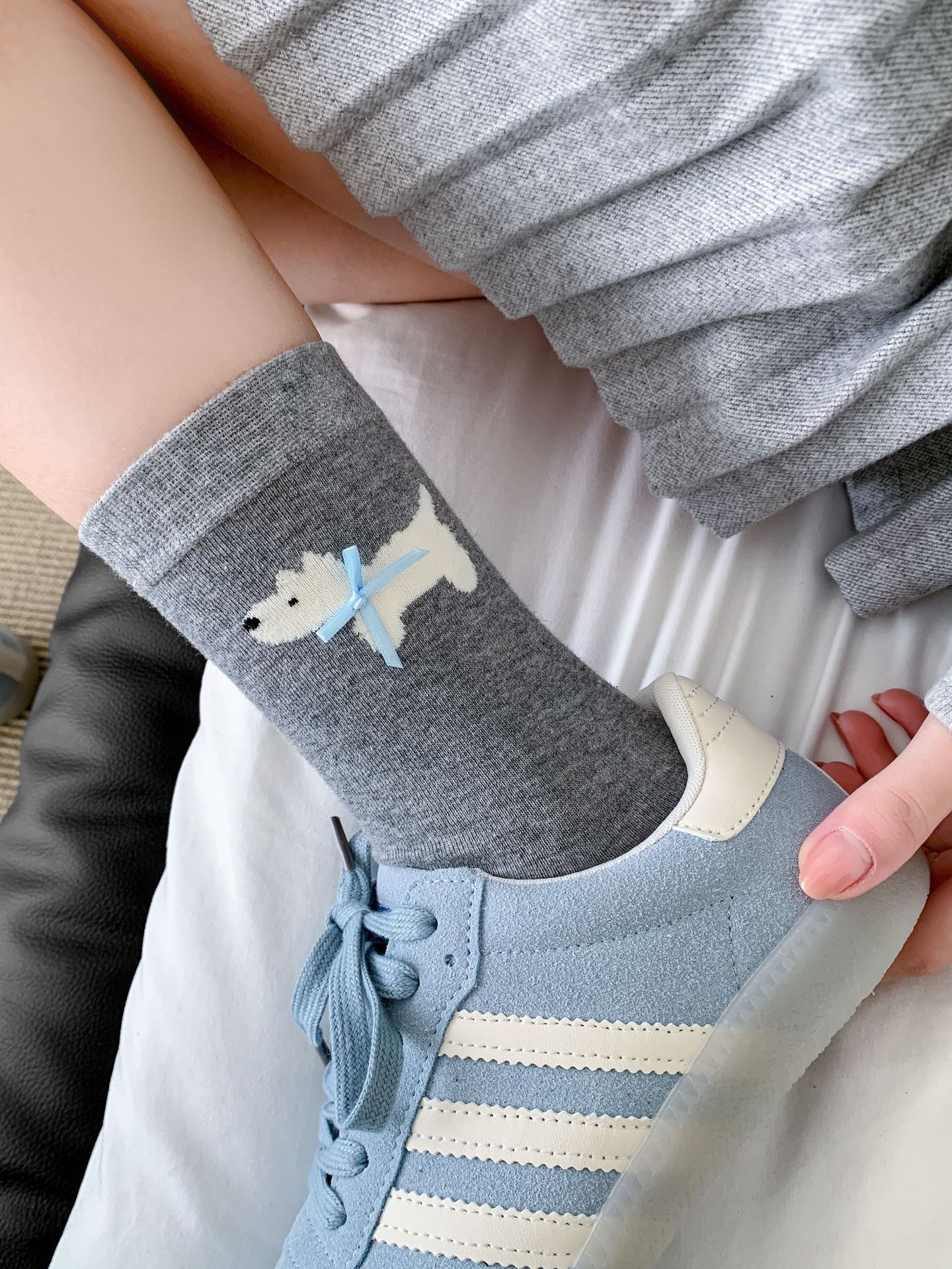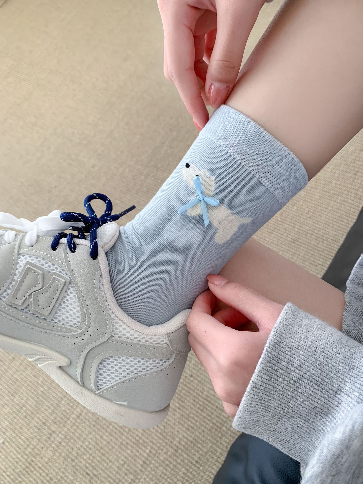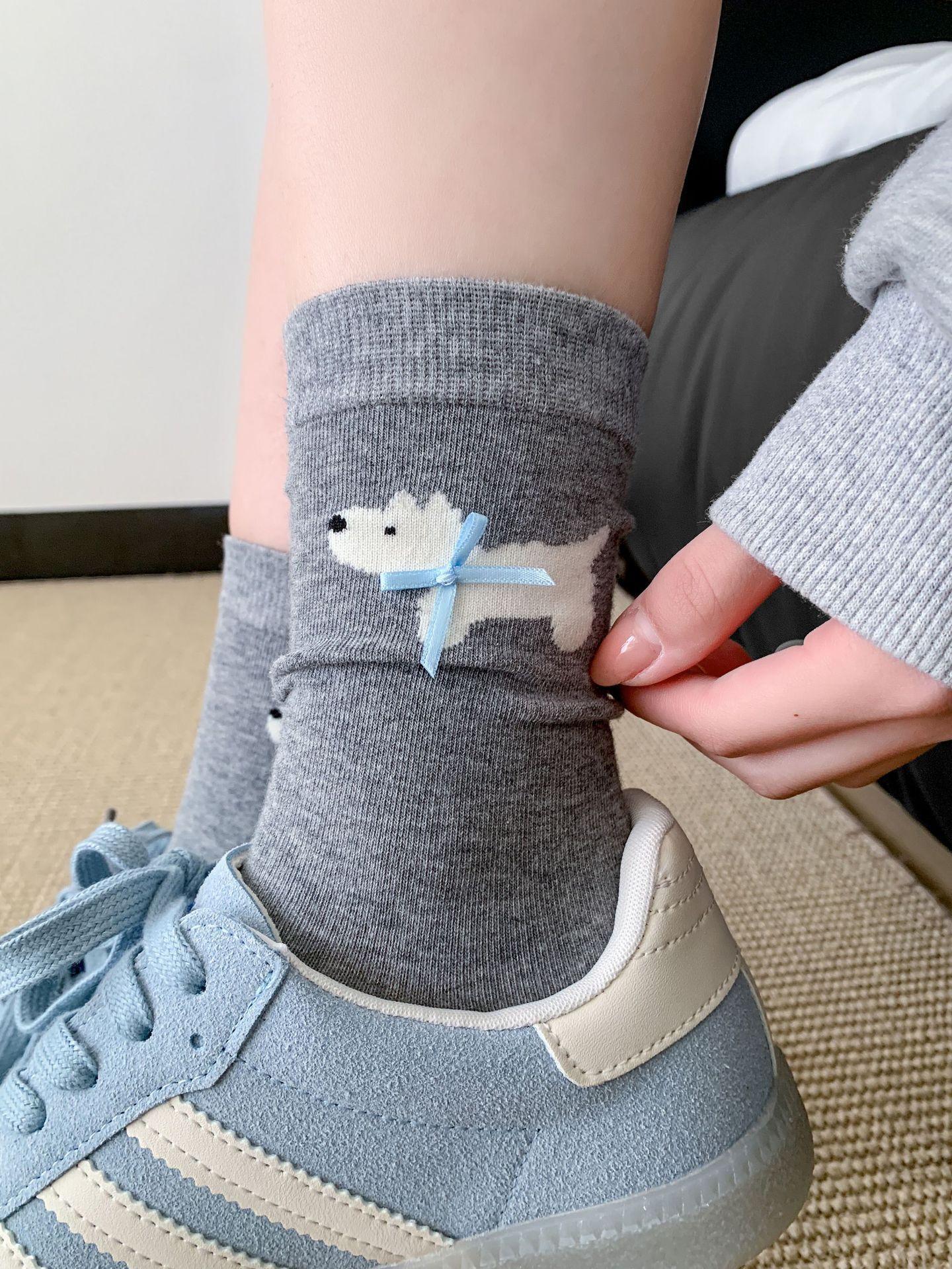 여성용 양말 봄 여름 한국어 버전 만화 강아지 리본 양말 귀여운 뼈없는 양말 Zhuji 양말스토어 가기