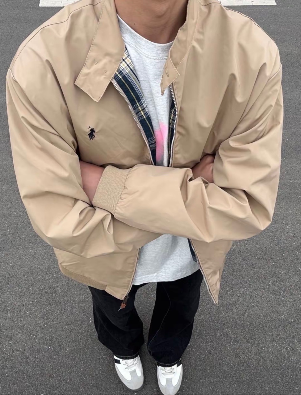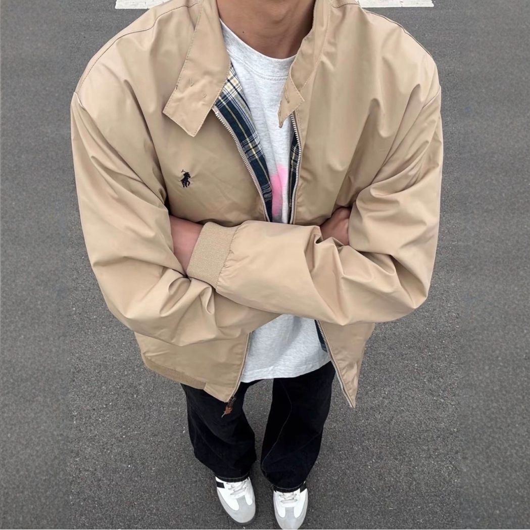 수정 판 랄프 포니 자수 남성복 클래식 올드 캐드 칼라 지퍼 재킷 코트 작업스토어 가기