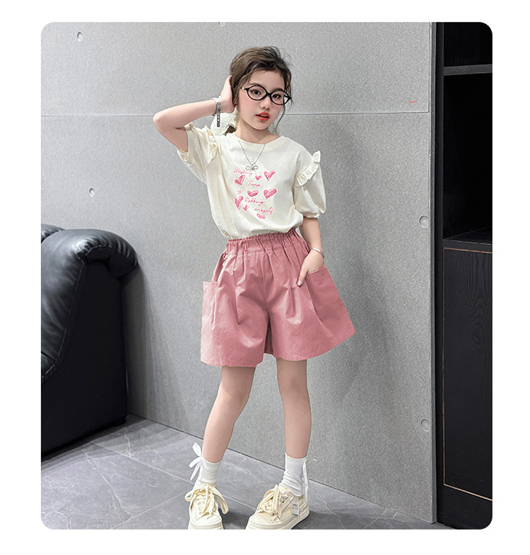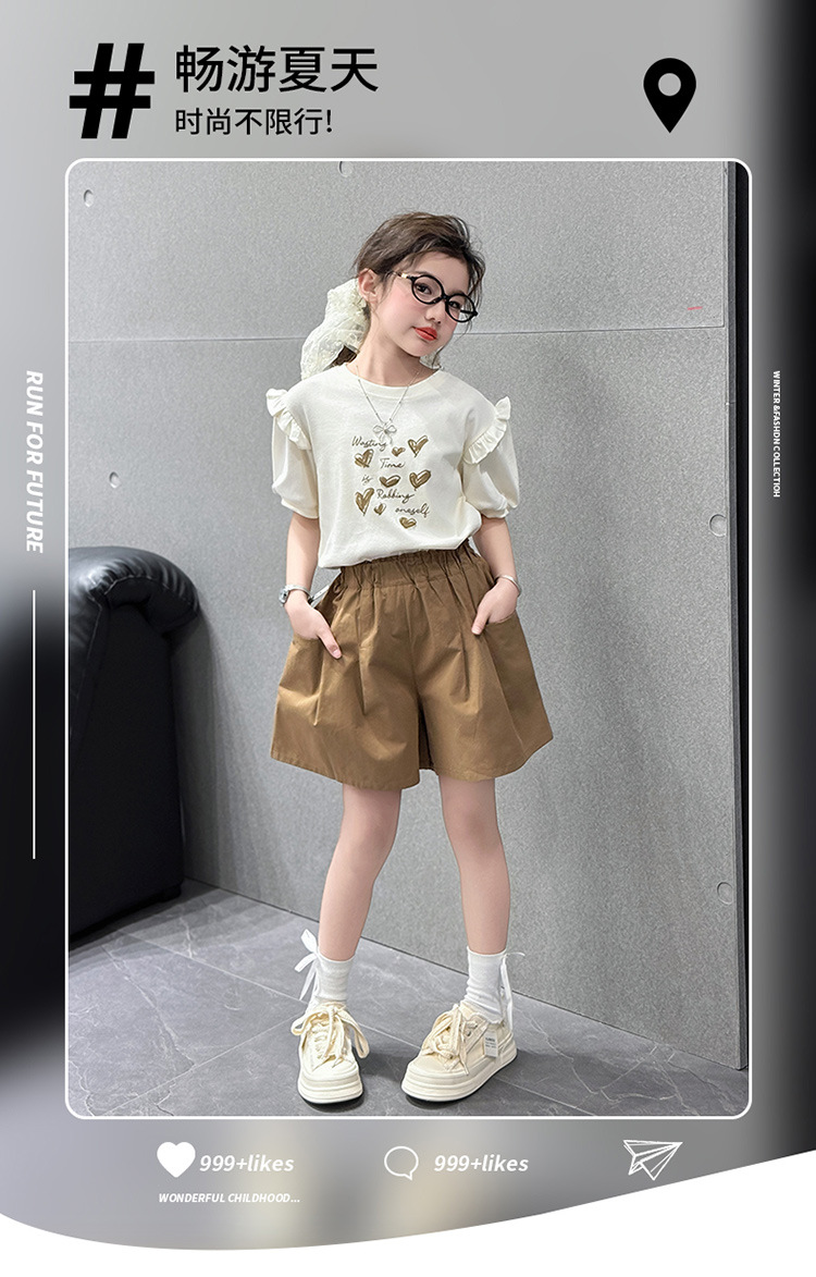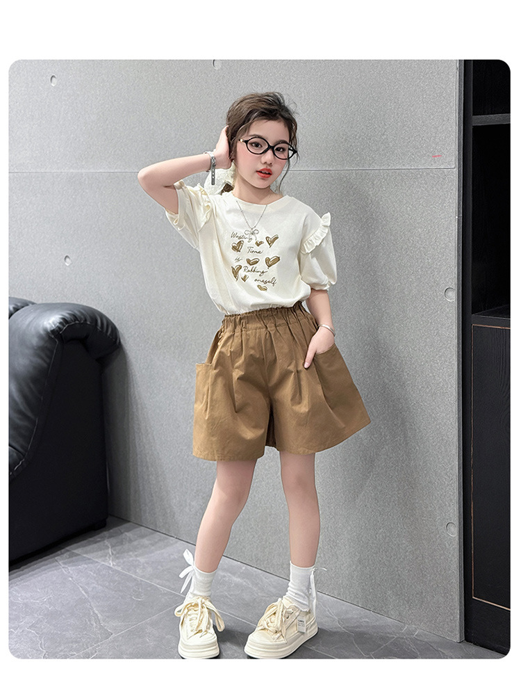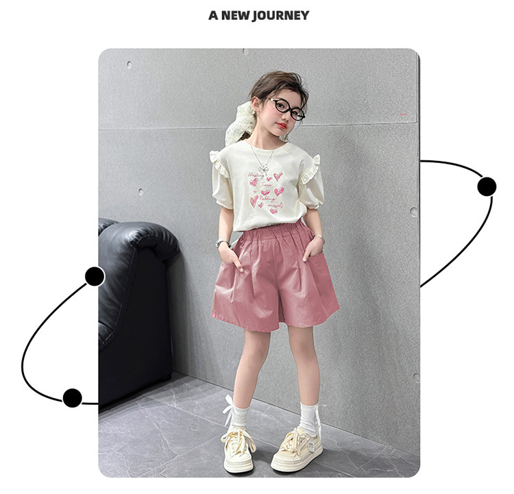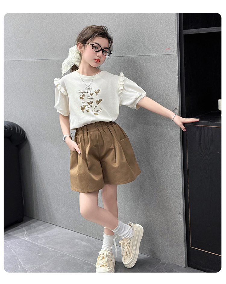 여자 반팔 반팔 세트 2025 년 여름 새 스타일 소녀의 달콤한 레이스 퍼프 소매 티셔츠 반바지 투피스 세트스토어 가기