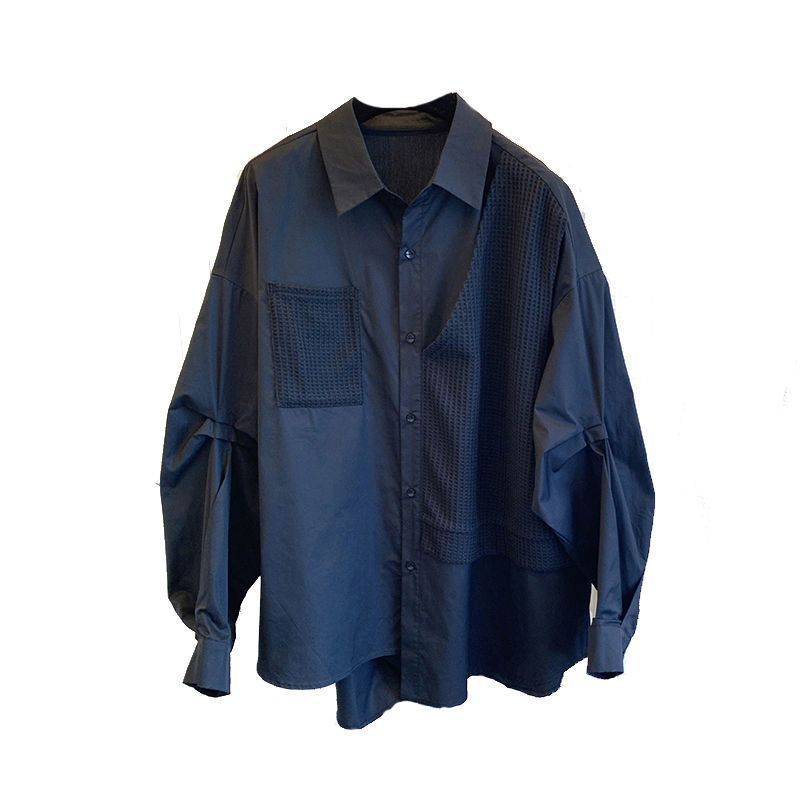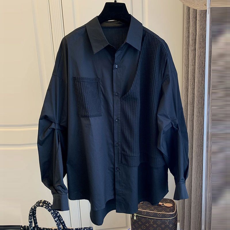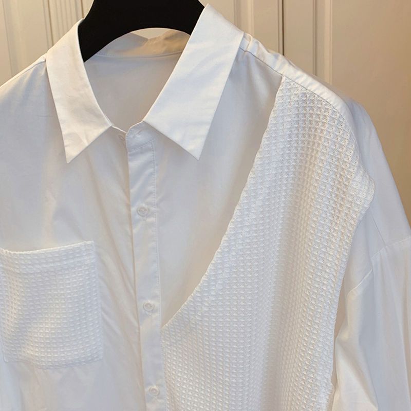 바느질 와플릭 가짜 투피스 틈새 디자인 한국 스타일 느슨한 캐주얼 레트로 긴팔 셔츠 여성 2025
