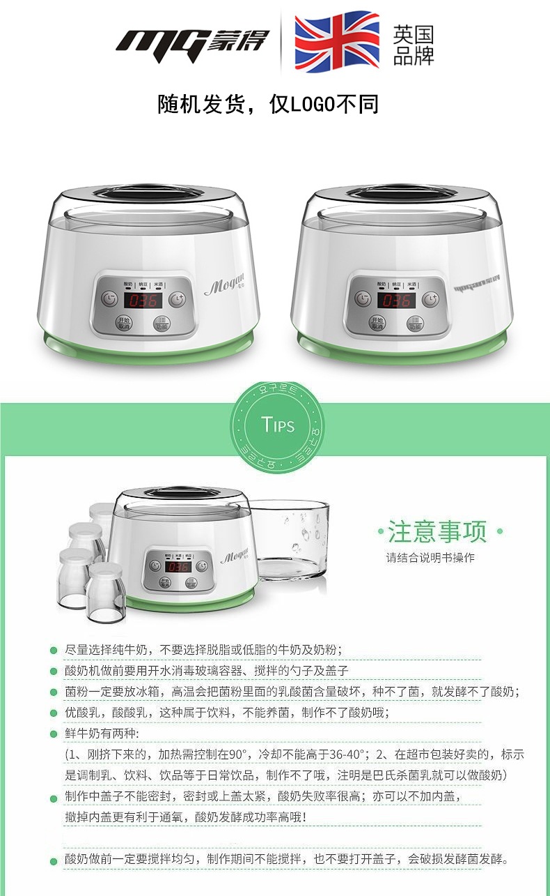 Mengte ZCW-S03 지능형 신 우유 기계 가정용 소형 자동 유리 라이너 일정한 온도 타이밍 쌀 와인 Natto스토어 가기