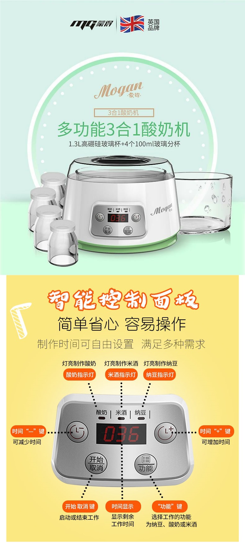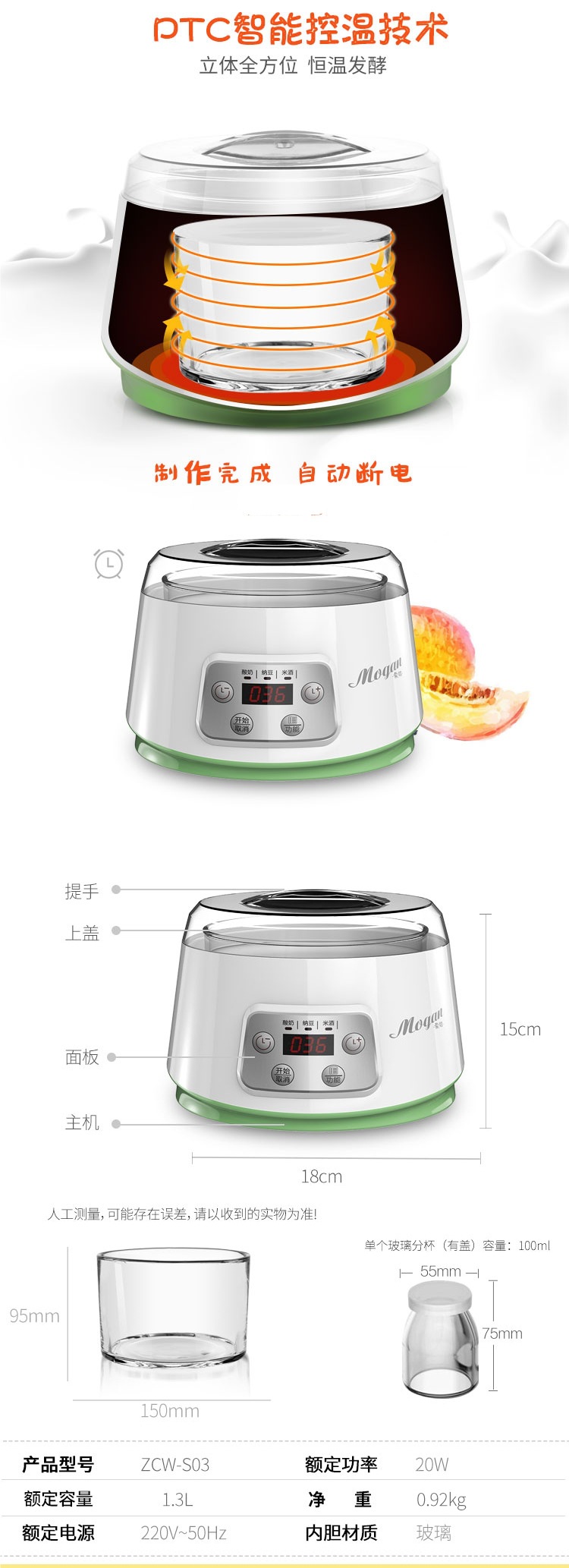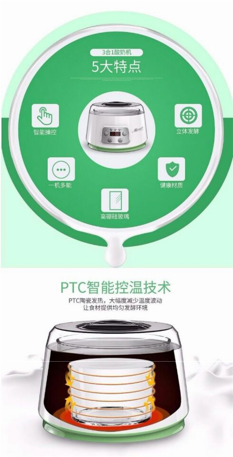 Mengte ZCW-S03 지능형 신 우유 기계 가정용 소형 자동 유리 라이너 일정한 온도 타이밍 쌀 와인 Natto