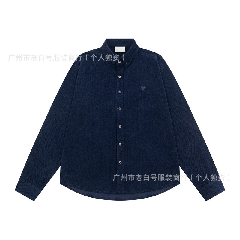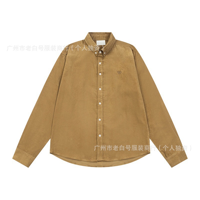 2025SS 가을 겨울 유럽과 미국의 트렌디 브랜드 새로운 AM1 러브 스몰 라벨 자수 심플 남성과 여성의 같은 스타일 코듀로이 셔츠스토어 가기