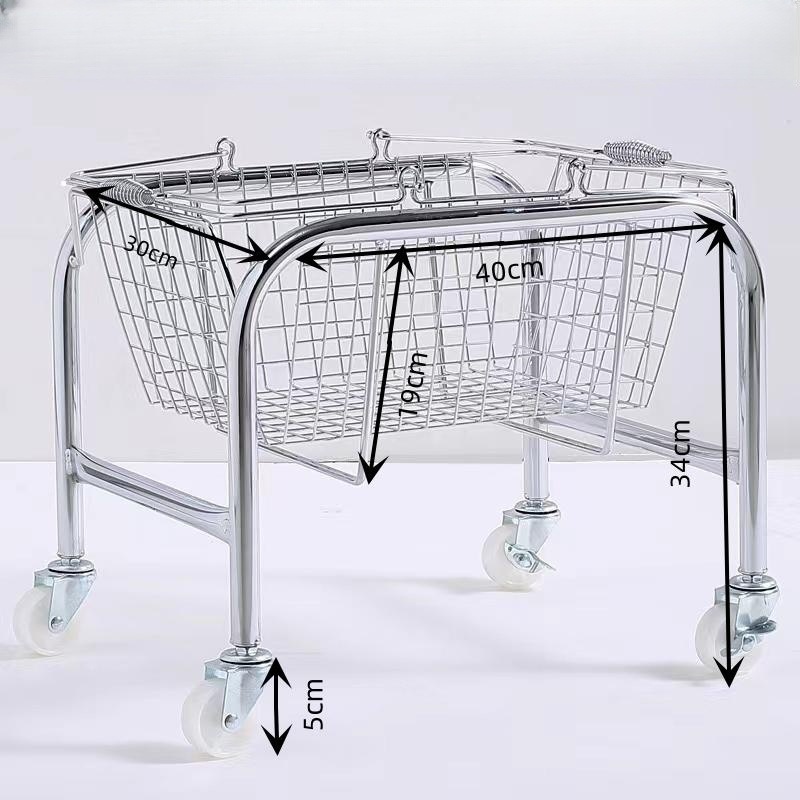 • 대형 스테인레스 스틸 트롤리 + 금속 바구니