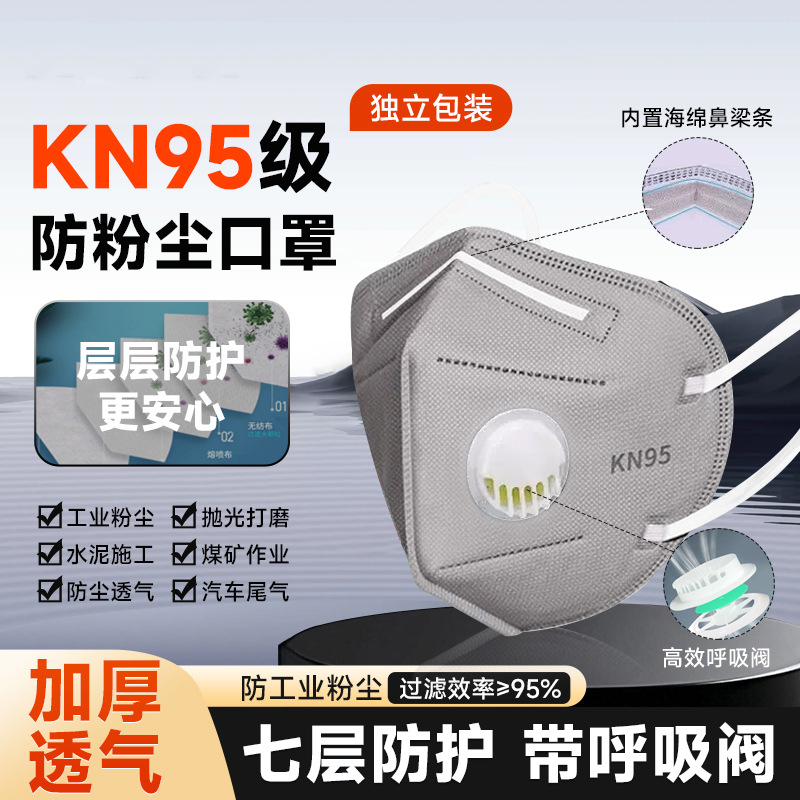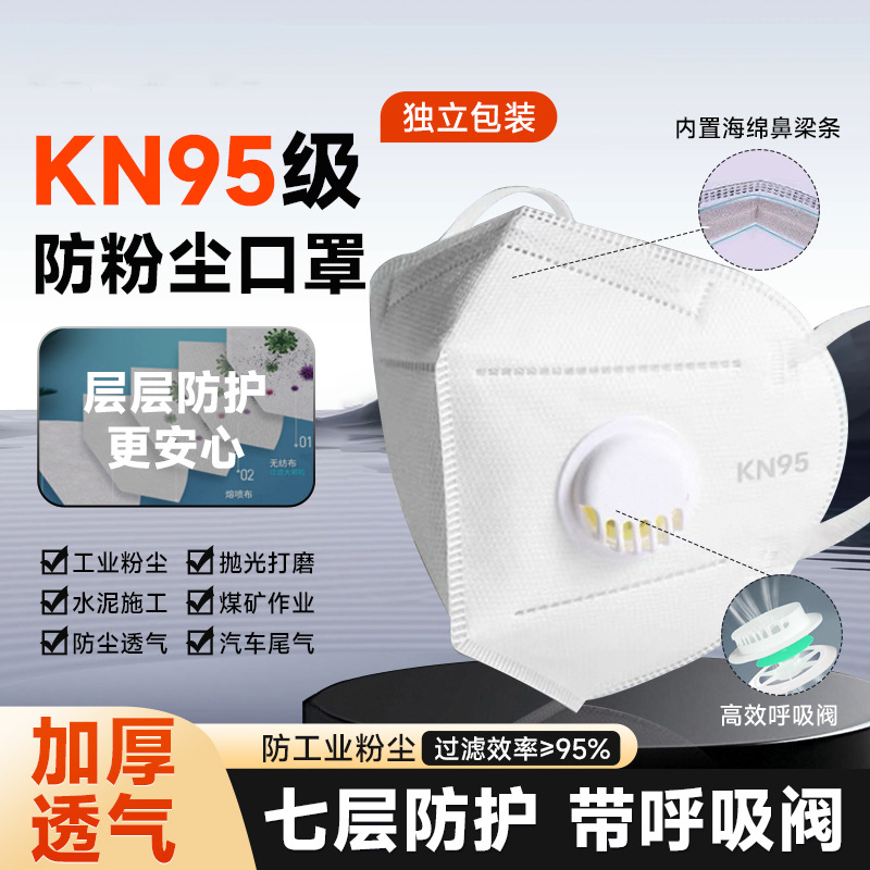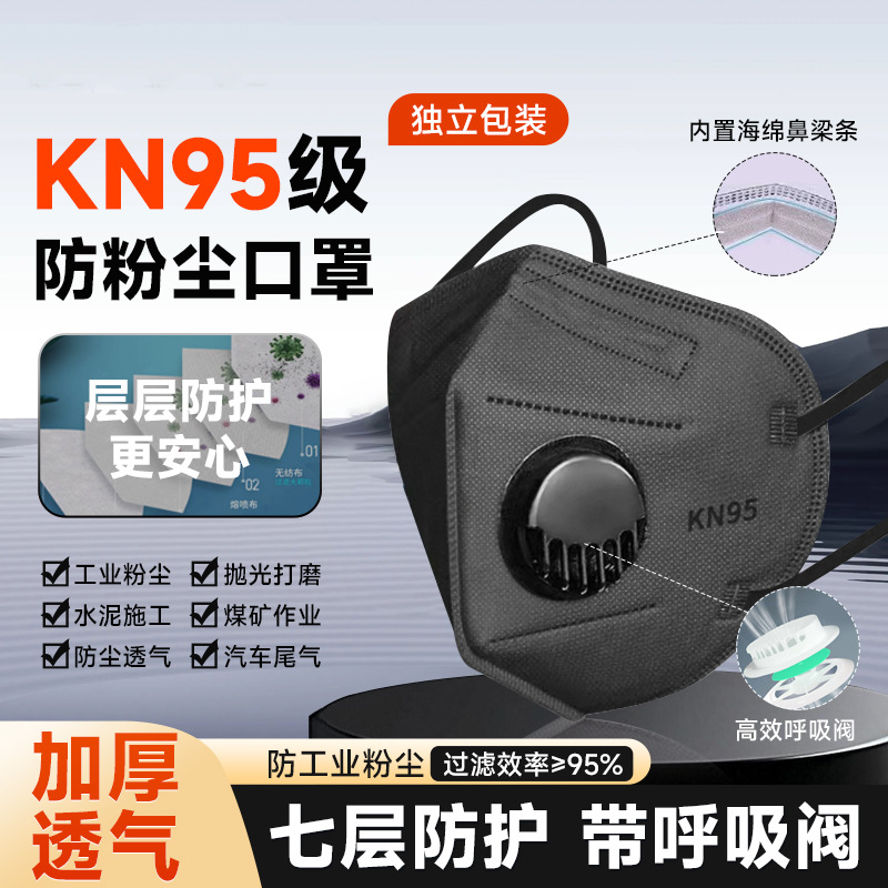 호흡 밸브가 있는 일회용 N95 마스크 산업용 장식 방진 독립 포장 7층 성인 보호 마스크
