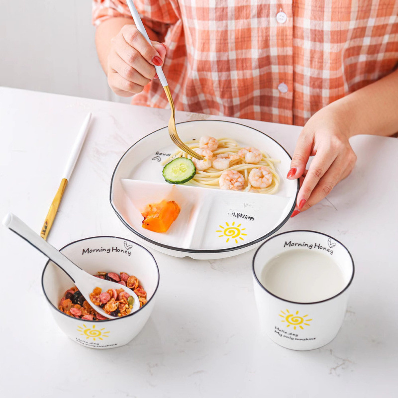 분할지방감소식사접시, 가정용 아침식사용 식기, 어린이용 세라믹 정량접시, 3칸식사접시, 무료배송스토어 가기