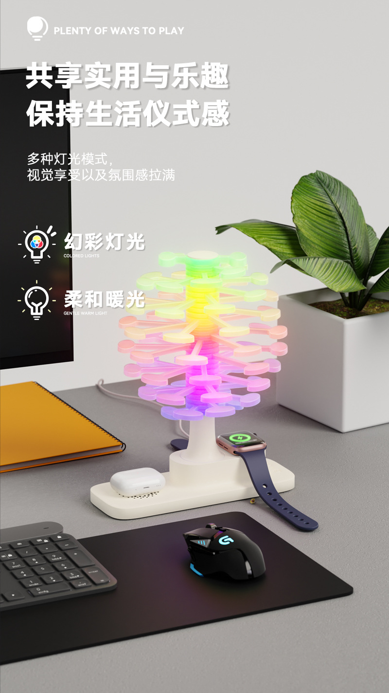 产品名称:SHS-2538螺旋树氛围灯(基础款/无线充款 )