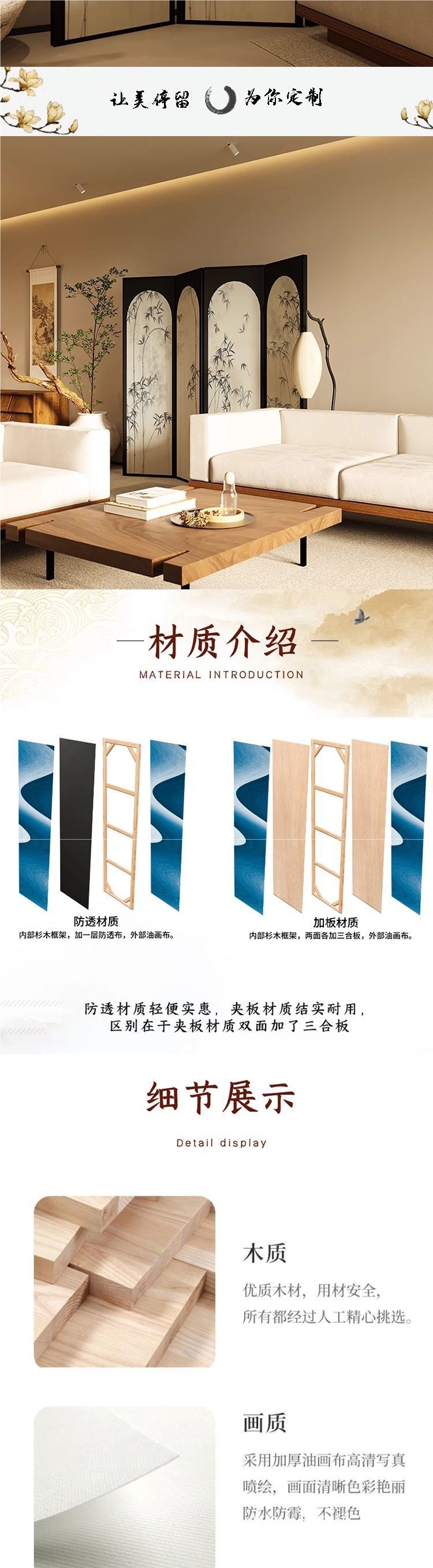 새로운 중국 스타일 대나무 스크린 파티션 거실 프랑스 장식 입구 벽 선 접이식 모바일 티 룸 대나무 접이식 화면