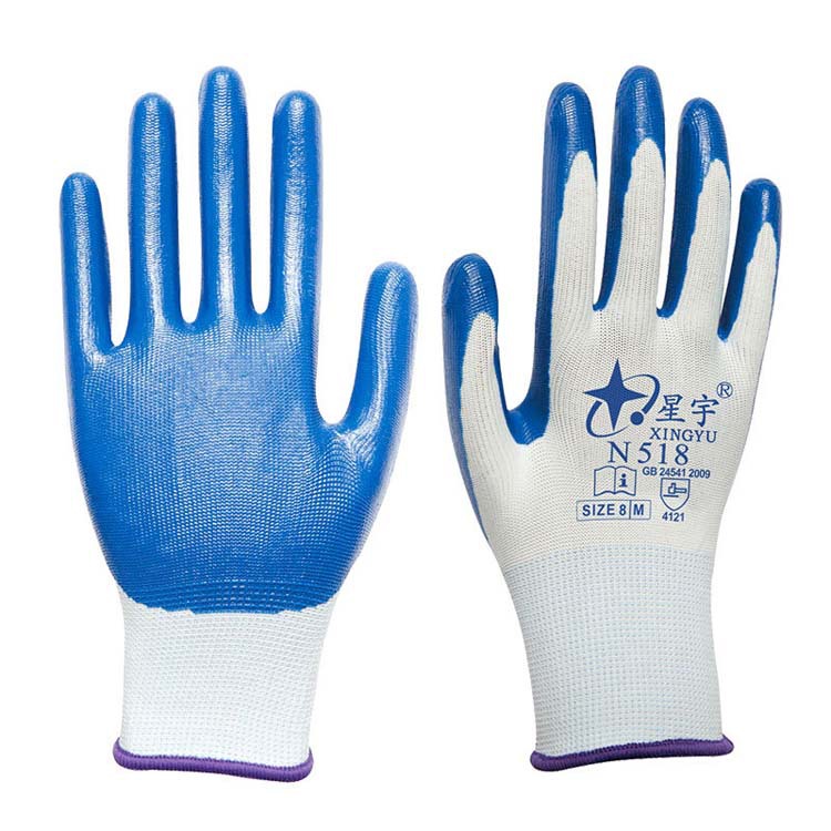 Xingyu N518 내마모성 장갑 미끄럼 방지 및 내유성 니트릴 노동 보호 나일론 고무 함침 장갑 건설 현장 장갑스토어 가기
