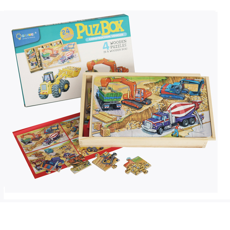 24 조각 나무 상자 4-in-one 퍼즐 어린이 몬테소리 교육 보조 교통 공룡 피규어 퍼즐 장난감스토어 가기