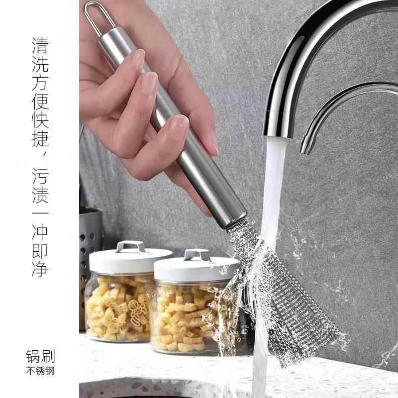 스테인레스 스틸 냄비 브러시, 가정용 냄비 세척 도구, 주방 매점 주방 용품 특수 청소 브러시, 강철 와이어 긴 손잡이 식기 세척 브러시스토어 가기