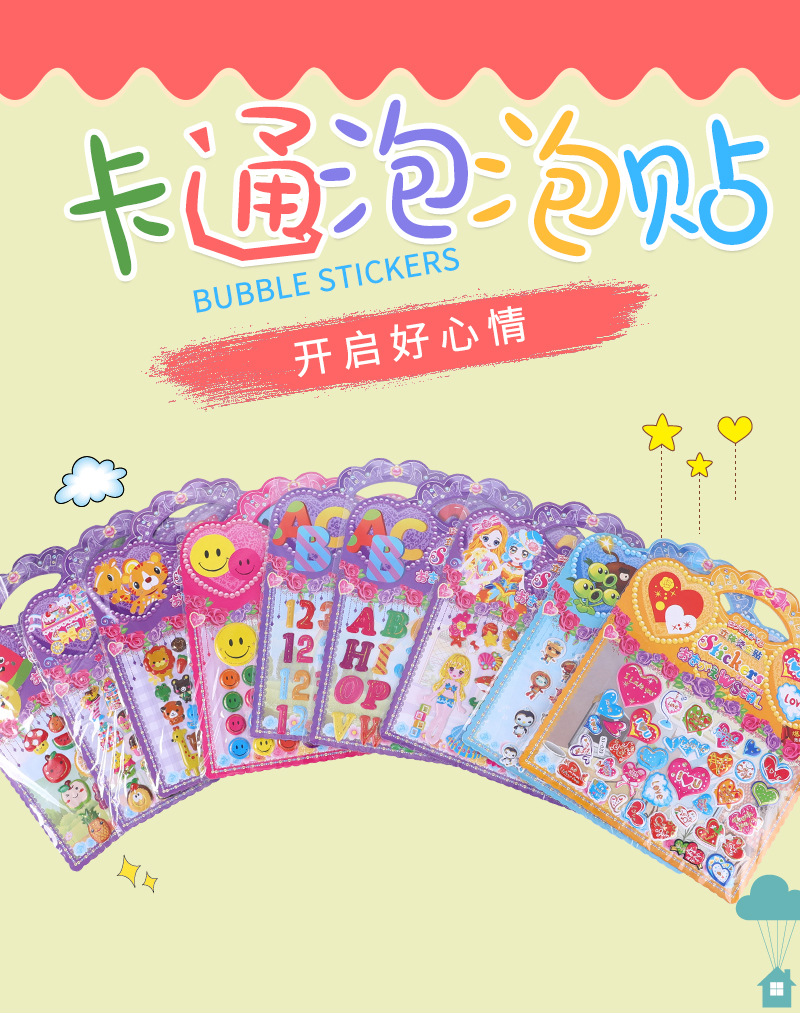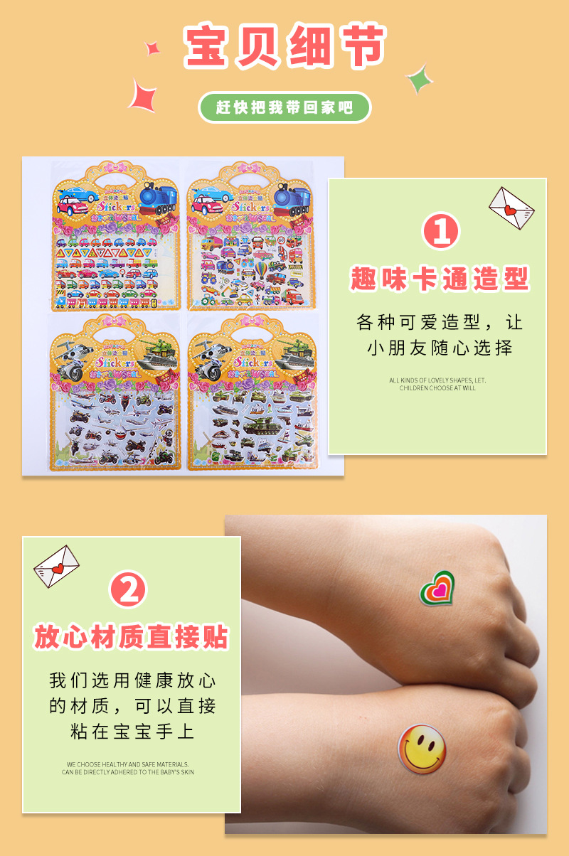 特色:立体感卡通贴纸,热销卡通给孩子一个色彩缤纷的童年