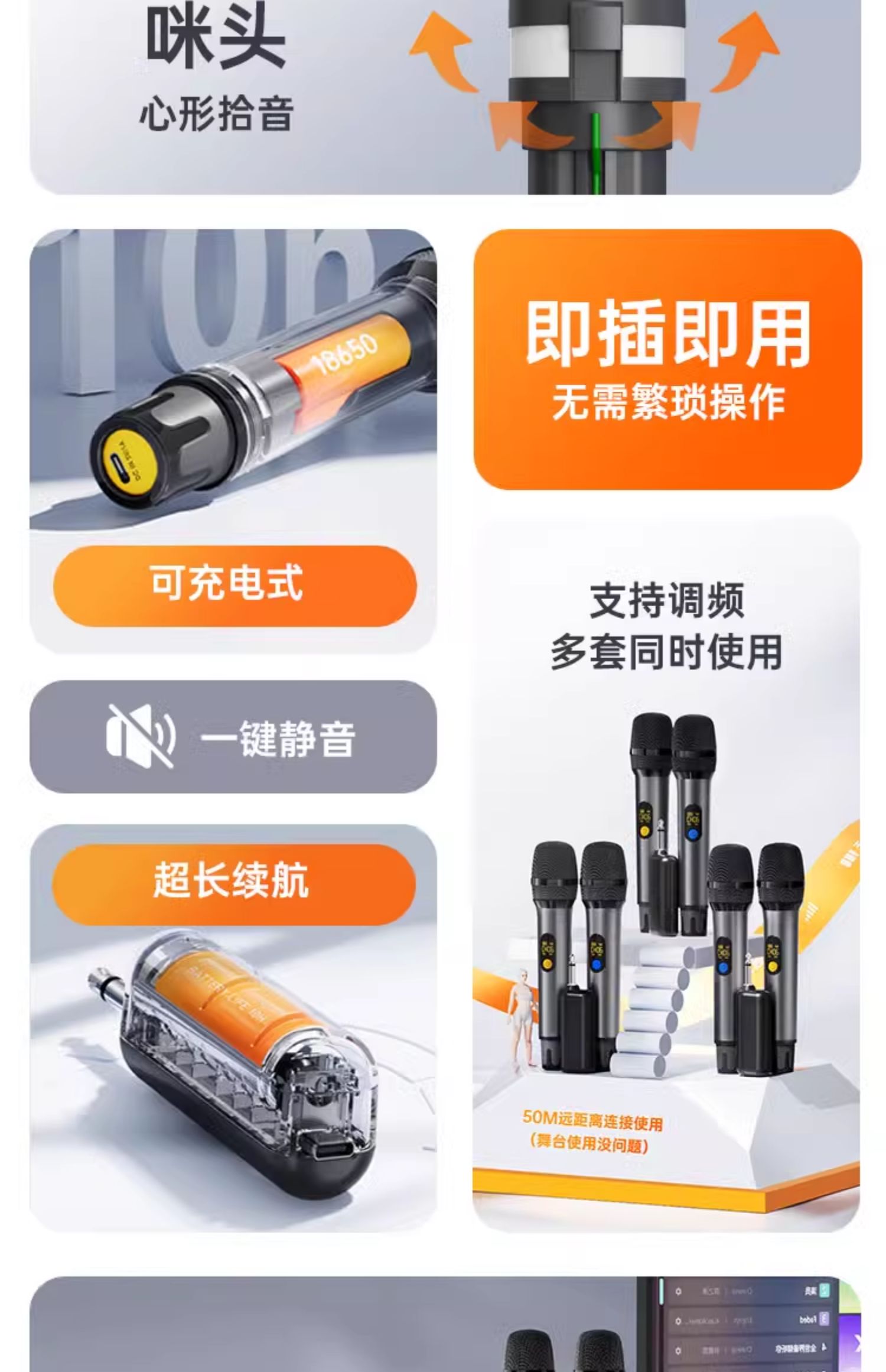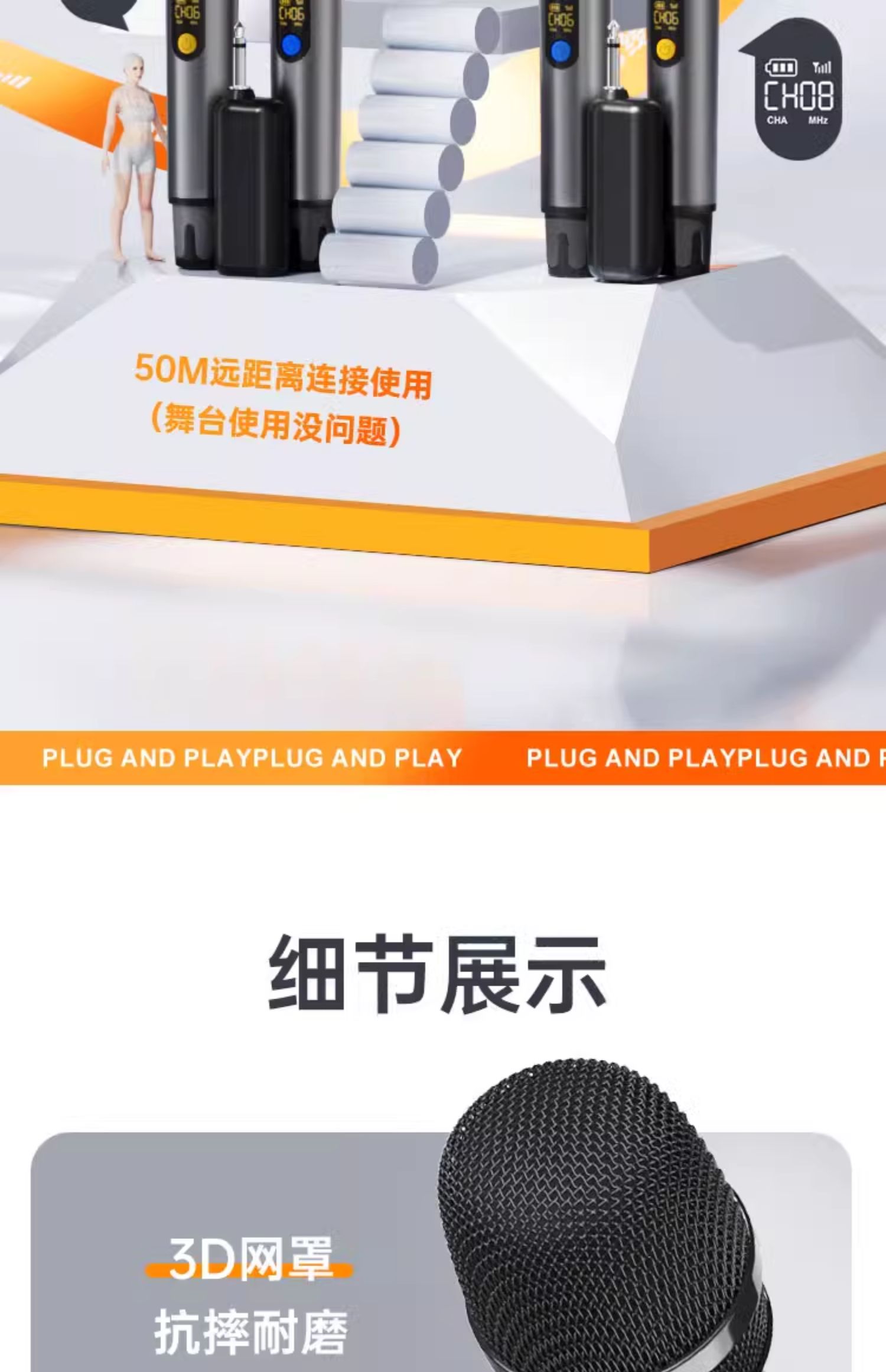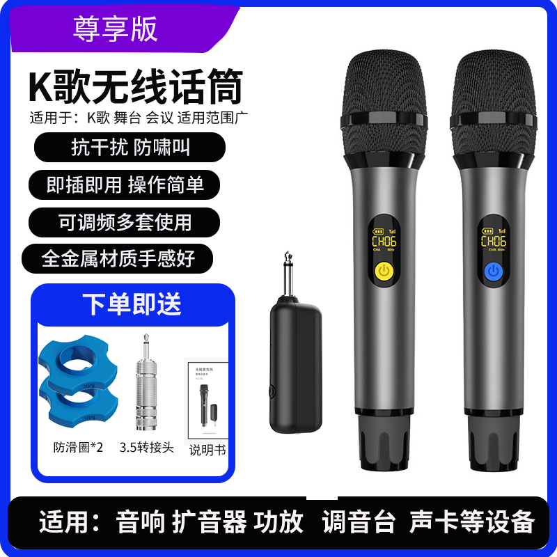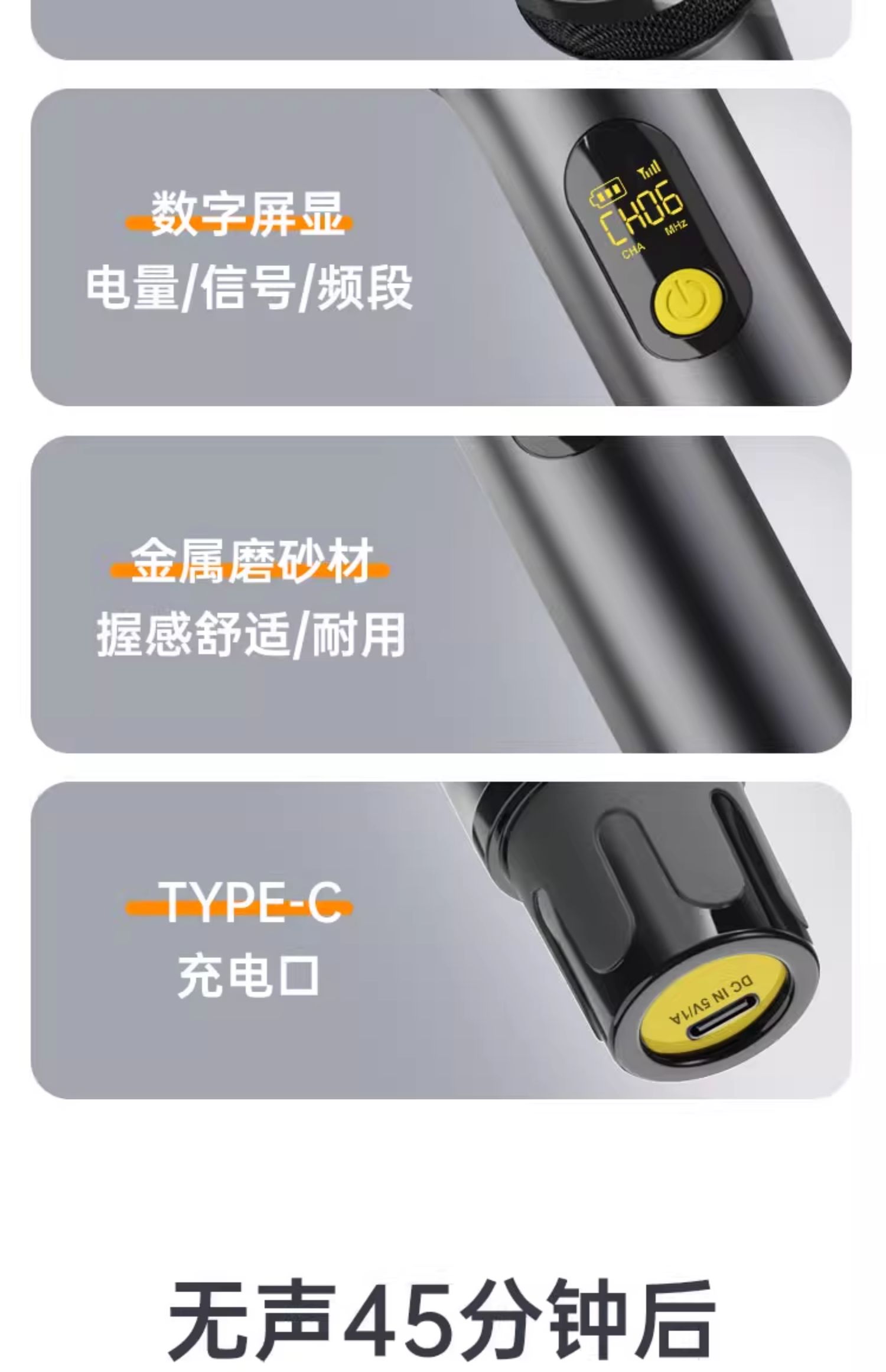 • 충전식 듀얼 마이크의 독점 버전 [조정 가능한 주파수 올메탈 버전] [휘파람 방지 및 간섭 방지]