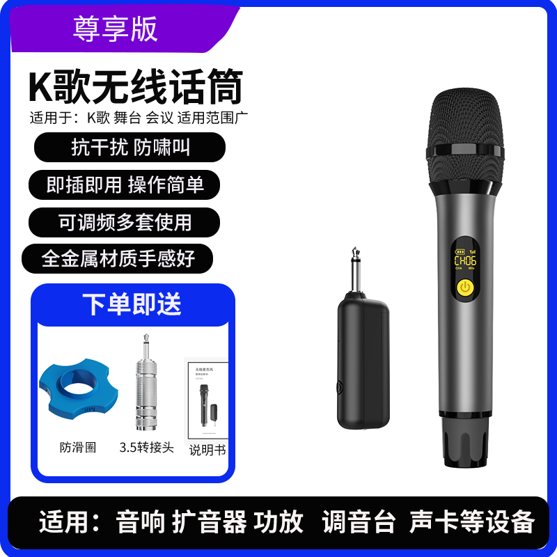 무료 배송 충전 하이 엔드 금속 유니버설 무선 마이크 유니버설 전문 가족 노래 K 송 야외 오디오 마이크