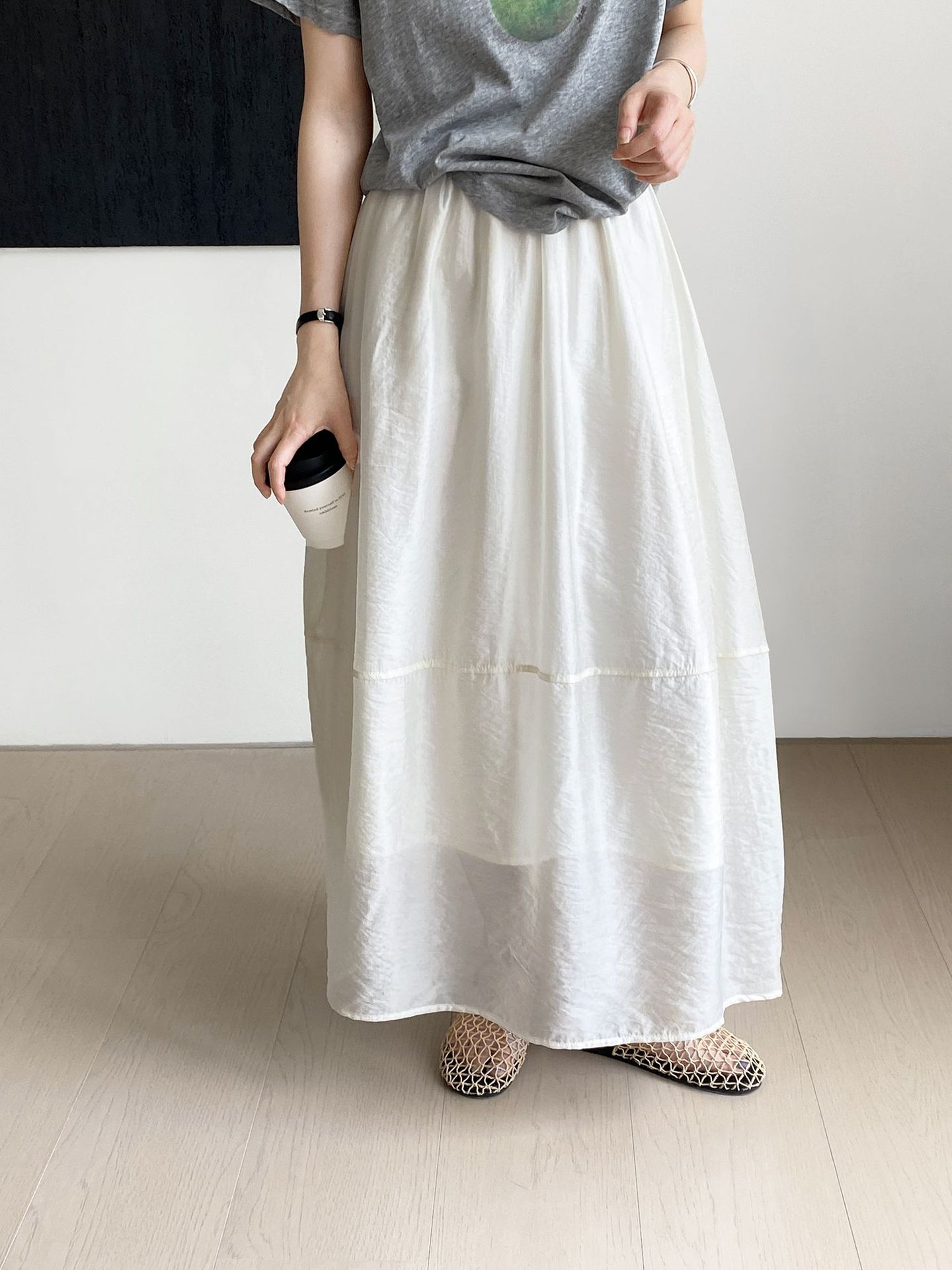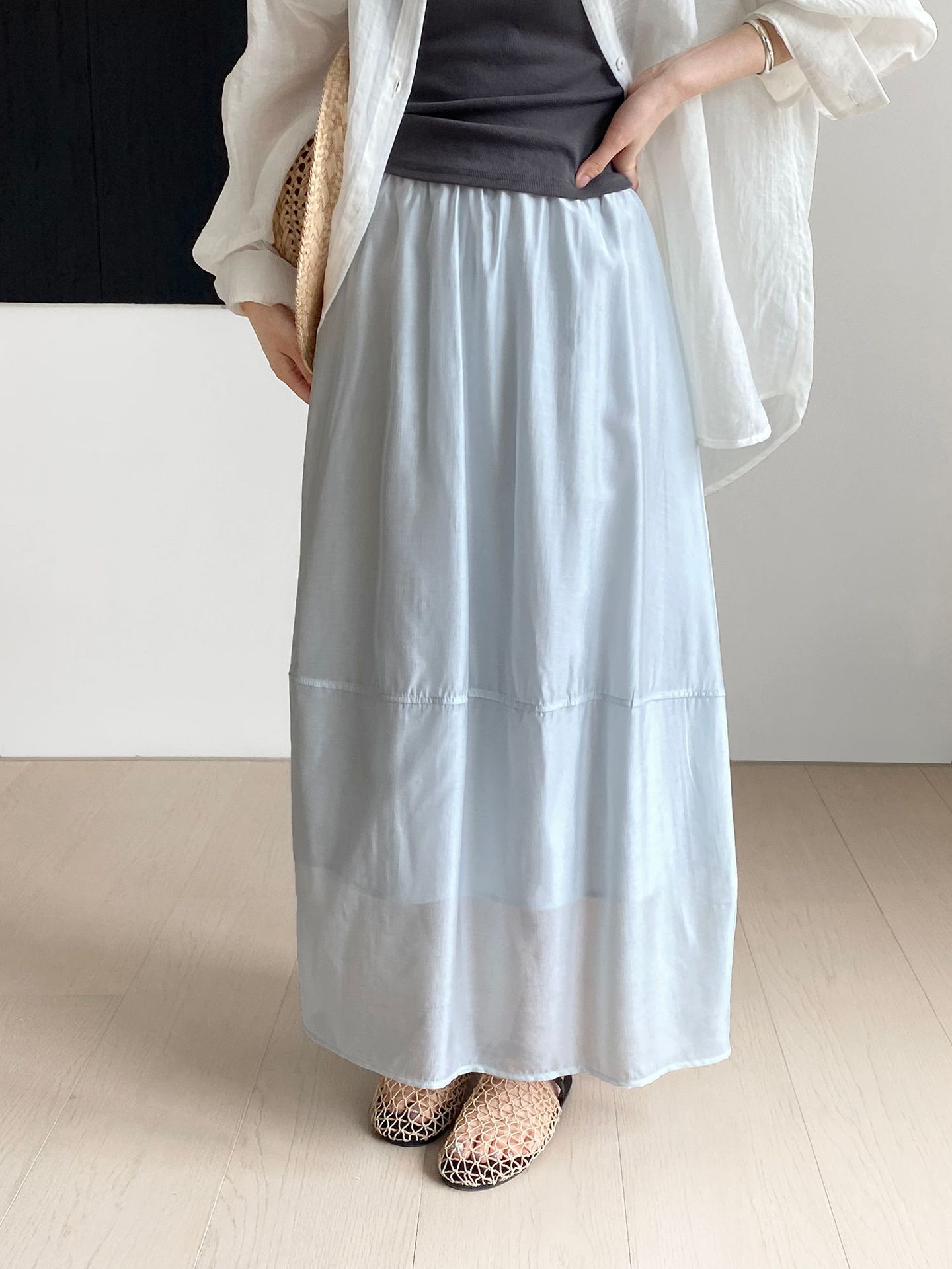 여름 꽃 봉오리 치마의 끝! 우산 스커트 여성 2135-5 무거운 실크 질감 바느질 치마