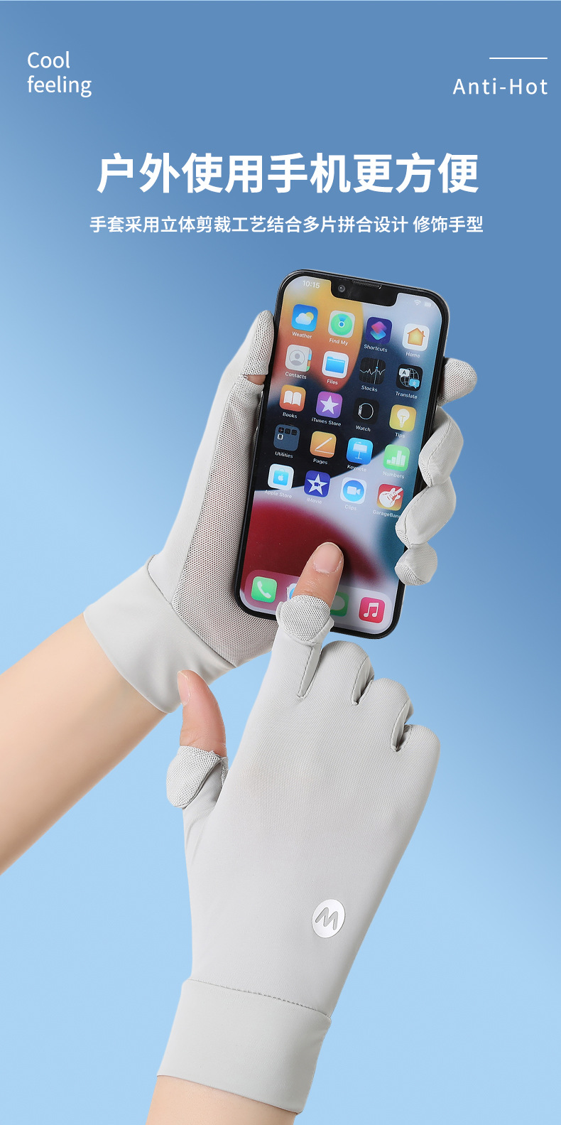 선 스크린 장갑 여성용 안티-UV 아이스 실크 듀 투손가락 여름 야외 전기 자전거 승마 터치 스크린 얇은 섹션