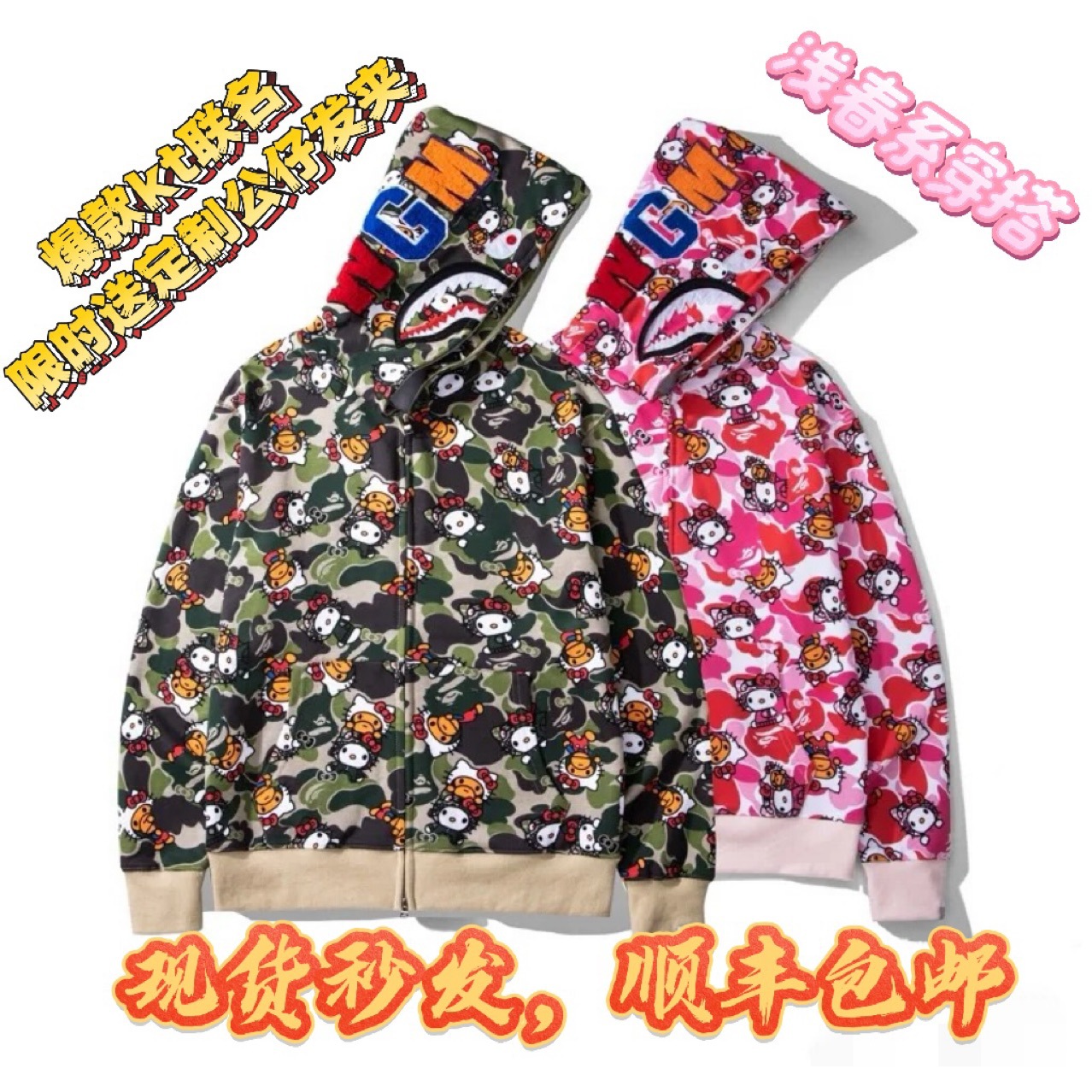 대외 무역 국경 간 도매 남성 운동복 상어 전체 인쇄 헬로 키티 캐주얼 루즈 후드 탑 여성 자켓스토어 가기