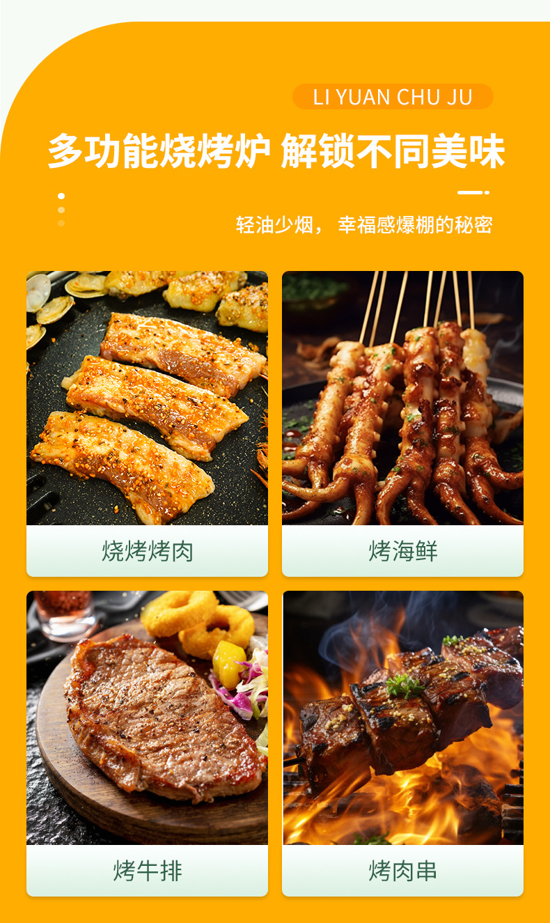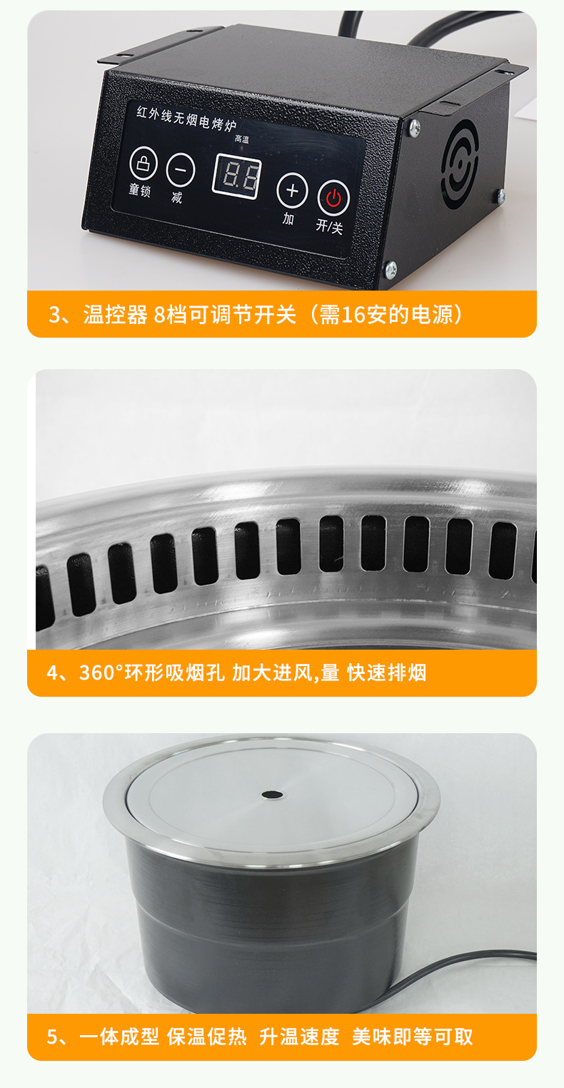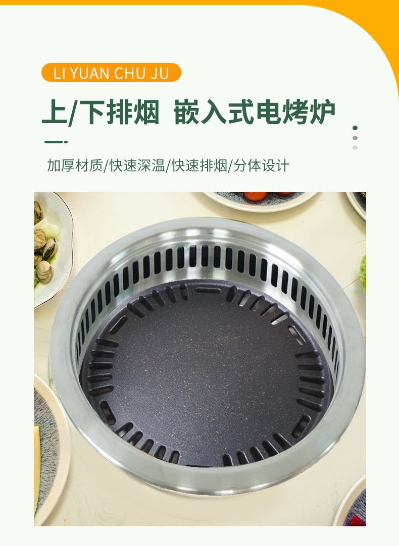 공장 상업용 바베큐 그릴 바베큐 뷔페 상단 및 하단 연기 배출 다기능 원형 붙지 않는 내장 전기 그릴
