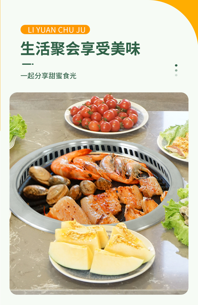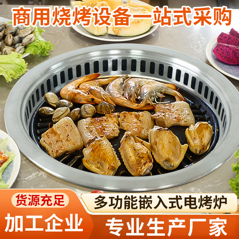 공장 상업용 바베큐 그릴 바베큐 뷔페 상단 및 하단 연기 배출 다기능 원형 붙지 않는 내장 전기 그릴스토어 가기
