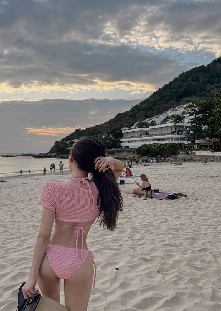 섹시한 해변 수영복 여성 한국 뜨거운 소녀 스타일 삼각형 낮은 허리 비키니 단색 도매 국경 BIKINI
