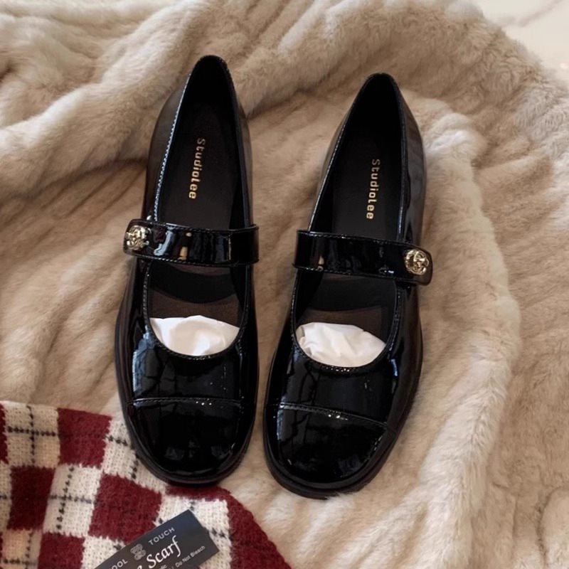 봄 플랫 싱글 신발 버클 두꺼운 힐 작은 가죽 신발 로퍼 여성 향기로운 스타일 프랑스 스타일 얕은 입 메리 제인 신발 여성스토어 가기