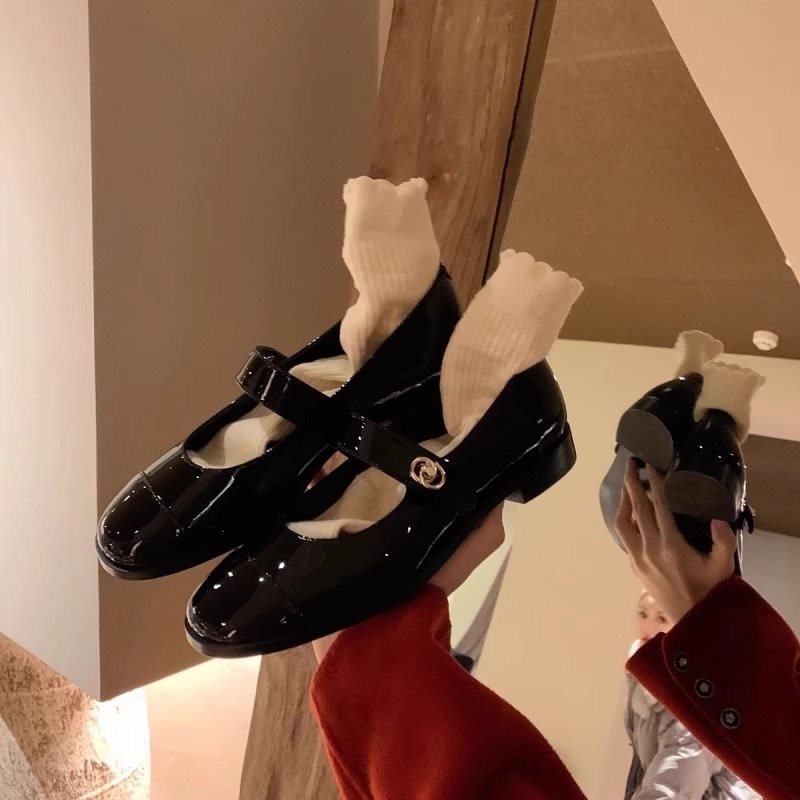 봄 플랫 싱글 신발 버클 두꺼운 힐 작은 가죽 신발 로퍼 여성 향기로운 스타일 프랑스 스타일 얕은 입 메리 제인 신발 여성