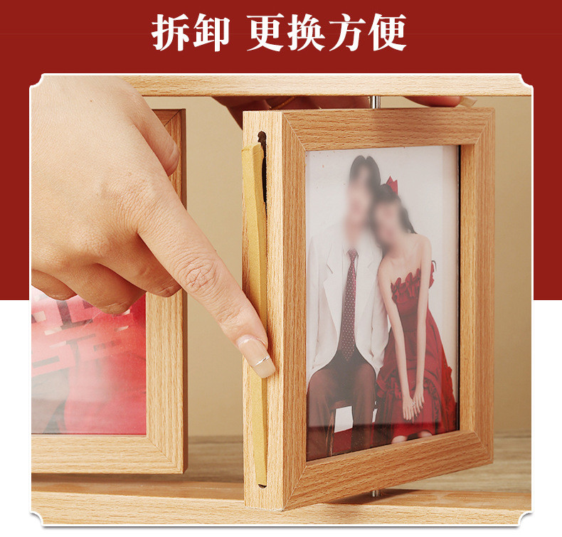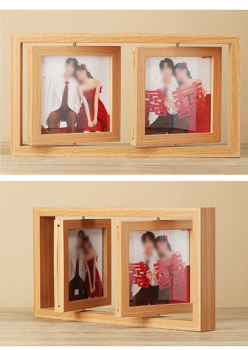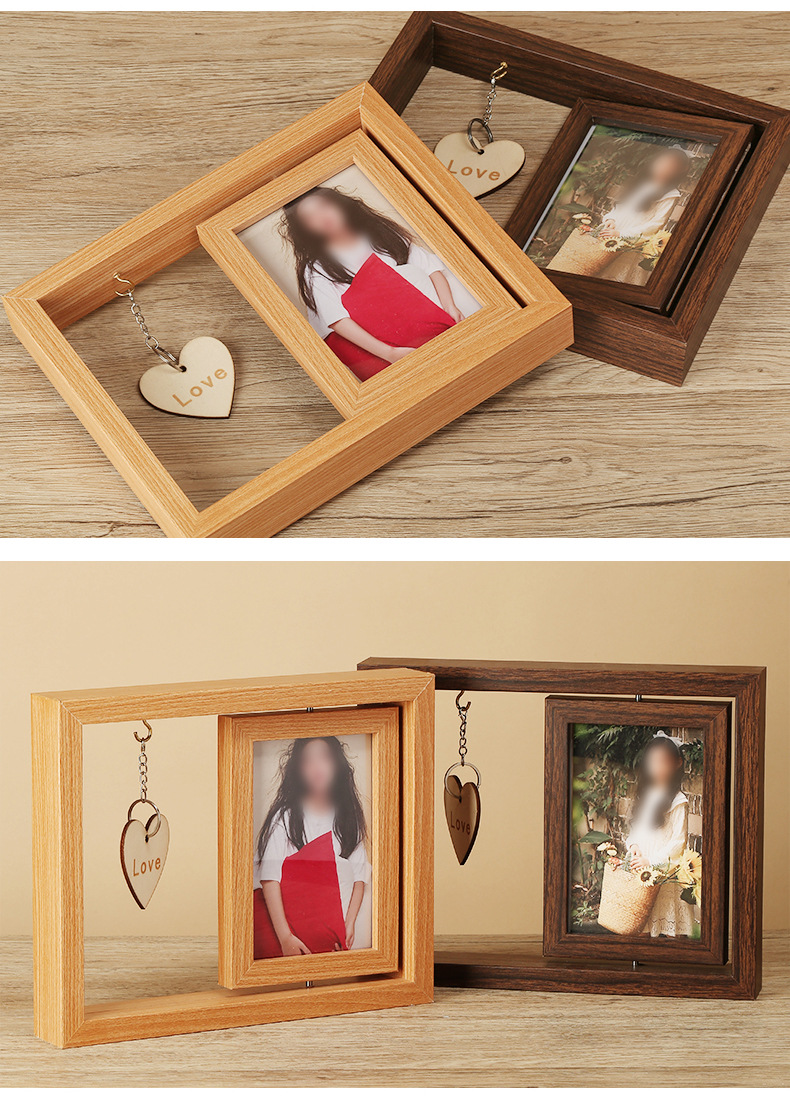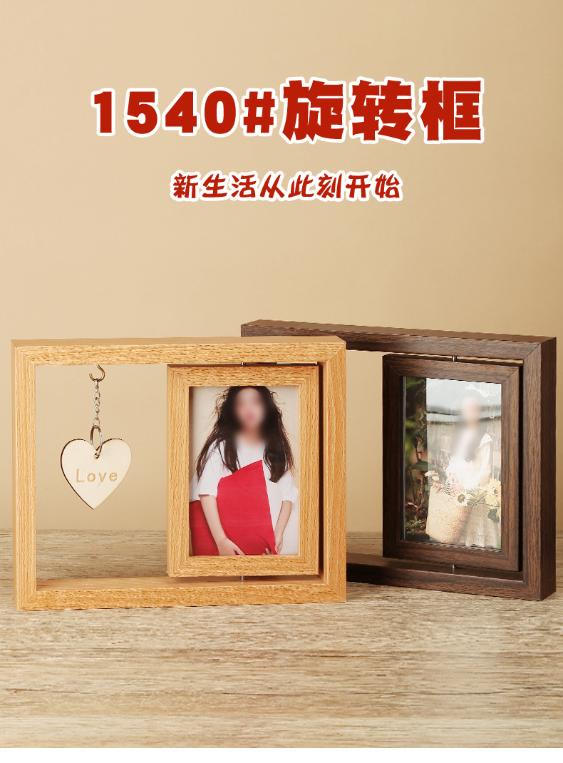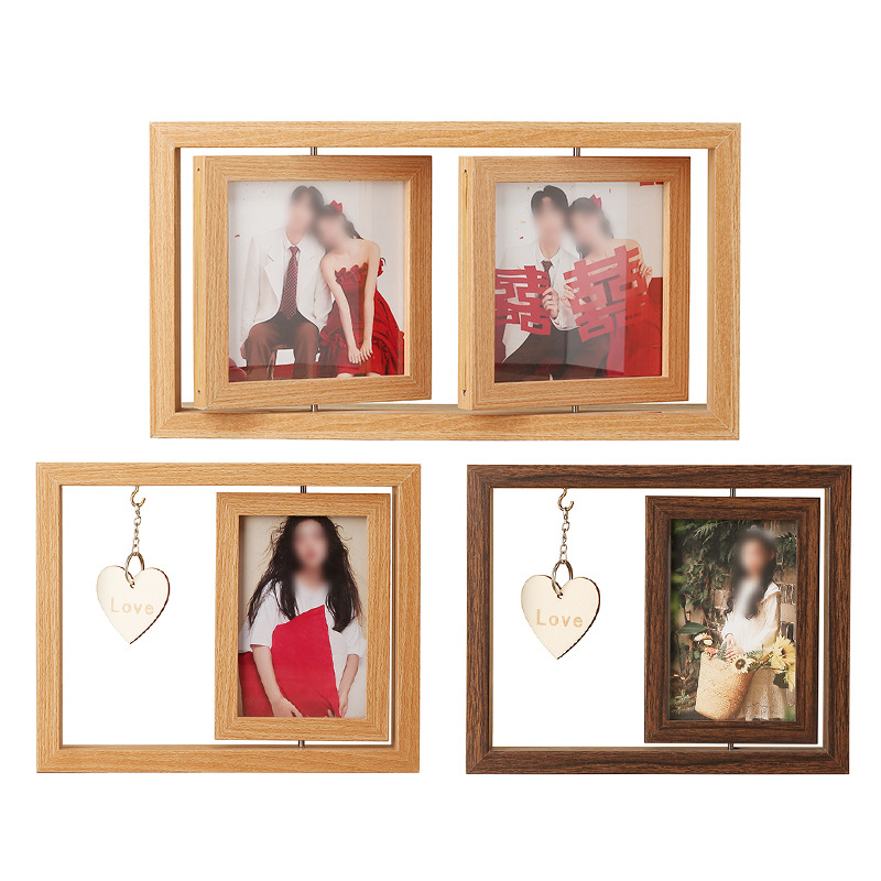 맞춤형 사진 액자 빈 프레임 회전형 테이블 잎 조각 사진 액자 빈 프레임 양면 회전 다기능 사진 액자 액세서리 포함