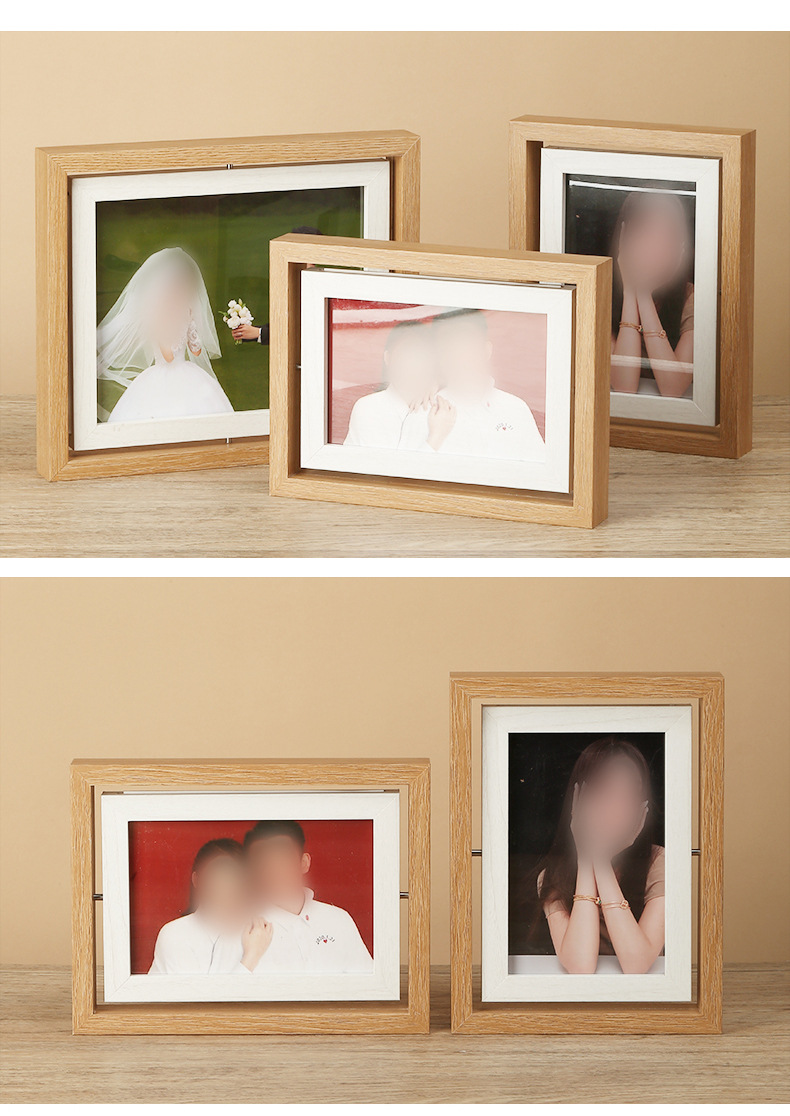 맞춤형 사진 액자 빈 프레임 회전형 테이블 잎 조각 사진 액자 빈 프레임 양면 회전 다기능 사진 액자 액세서리 포함스토어 가기