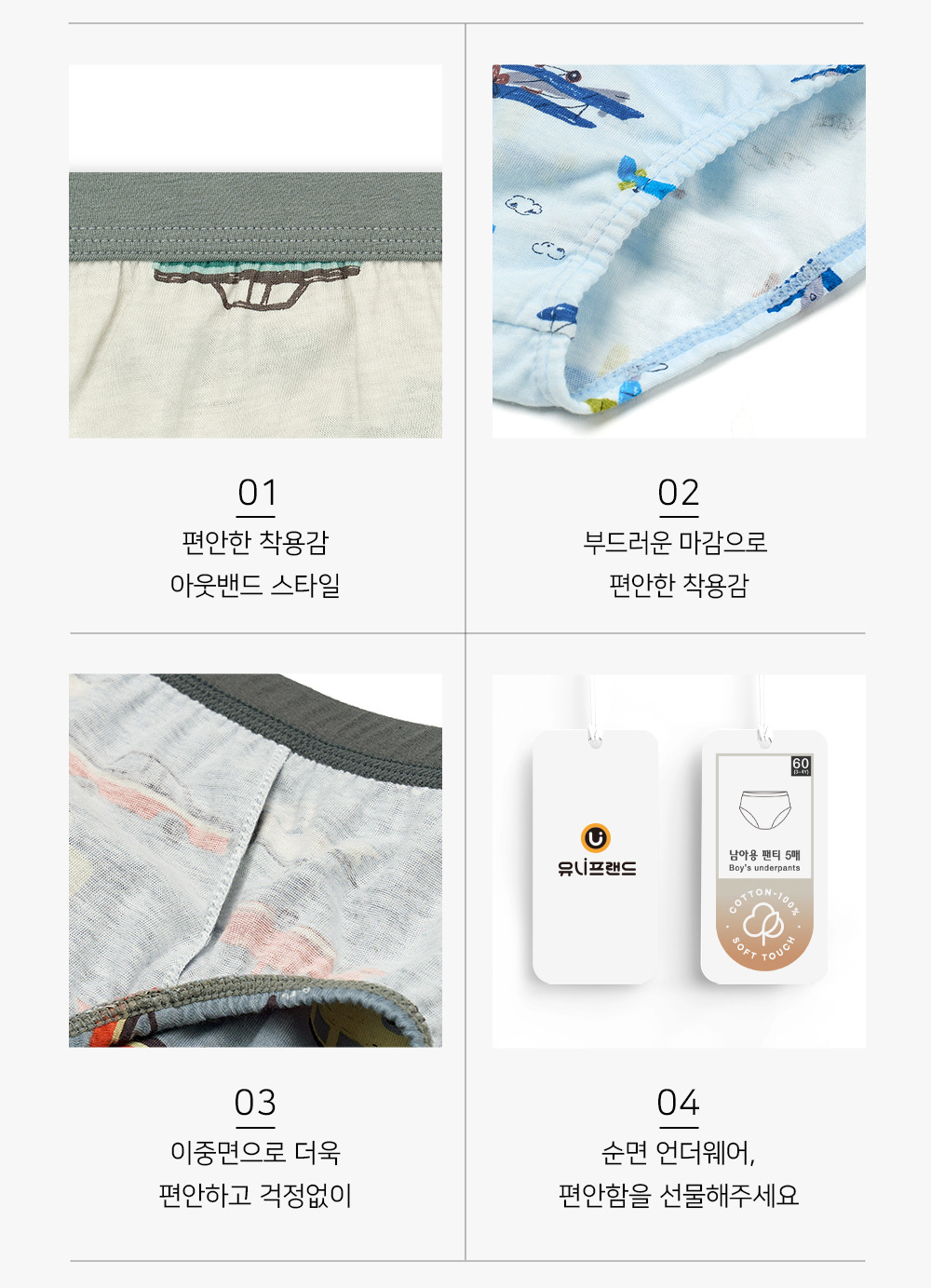 Unifriend 한국 어린이 속옷 사계절 소녀 퓨어 코튼 클래스 브리프 소년 빵 바지 만화 인쇄