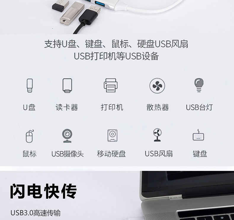 휴대 전화 hub3.0 도킹 스테이션 usb 스플리터 Typec 인터페이스 4 대 1 허브 1 드래그 4 자리 도킹 스테이션