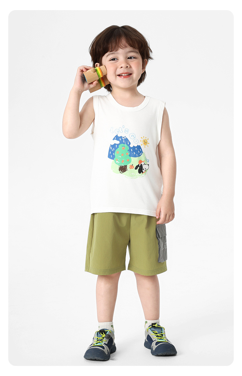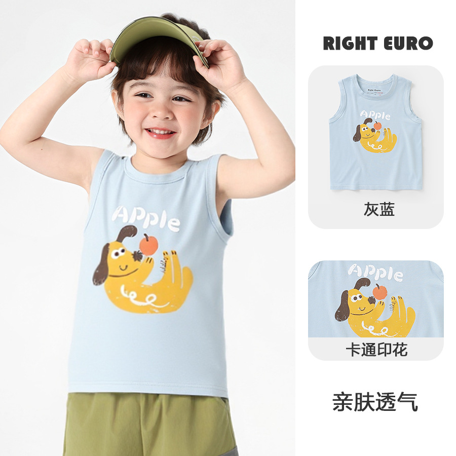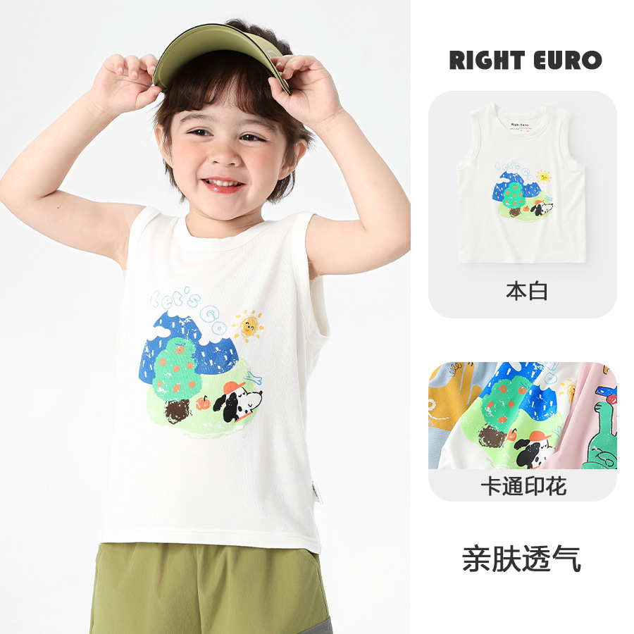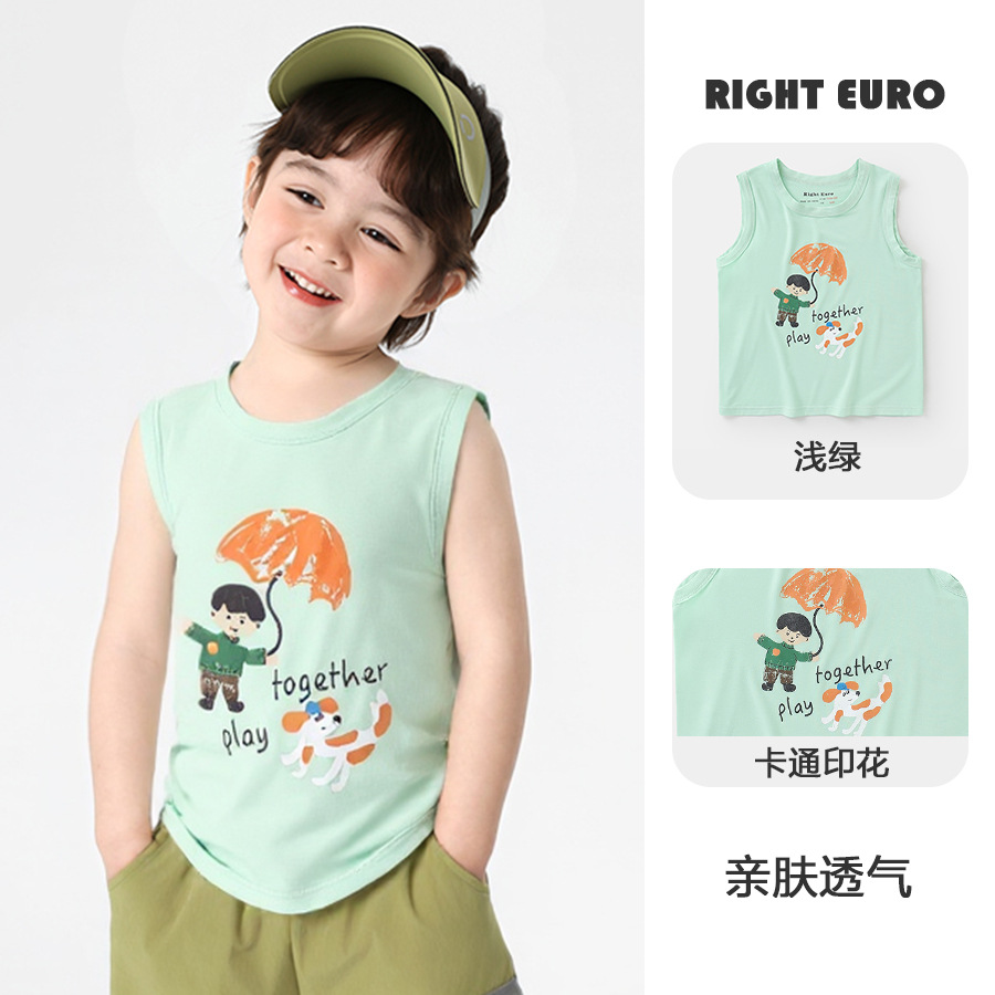 오른쪽 유럽 소년 조끼 여름 2025 새로운 아동복 어린이 아기 작은 소년 민소매 티셔츠 여름 얇은스토어 가기