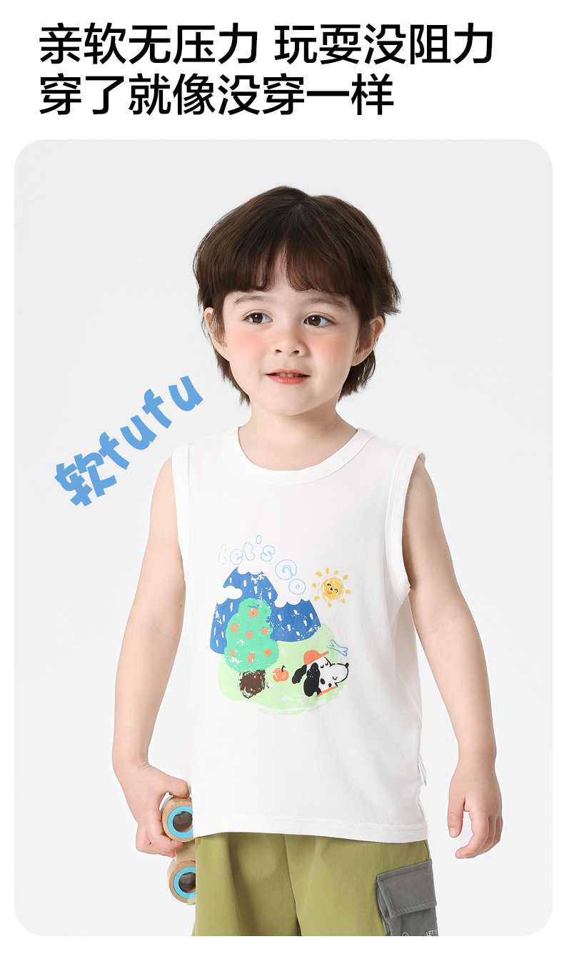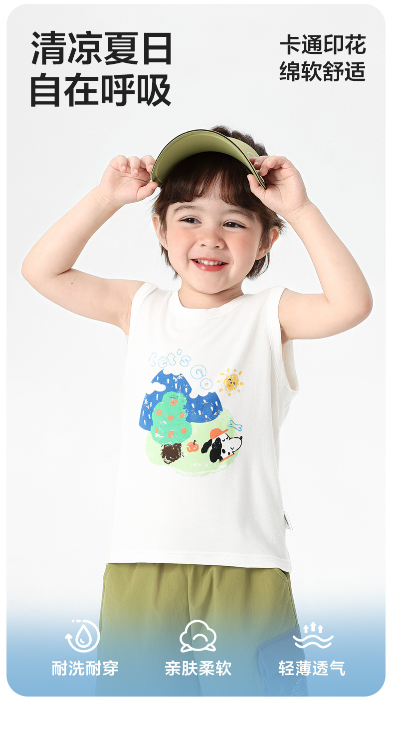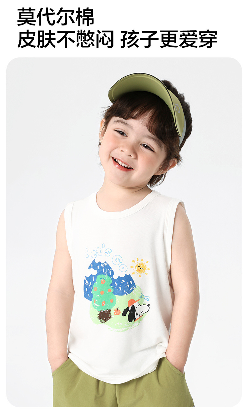 오른쪽 유럽 소년 조끼 여름 2025 새로운 아동복 어린이 아기 작은 소년 민소매 티셔츠 여름 얇은스토어 가기