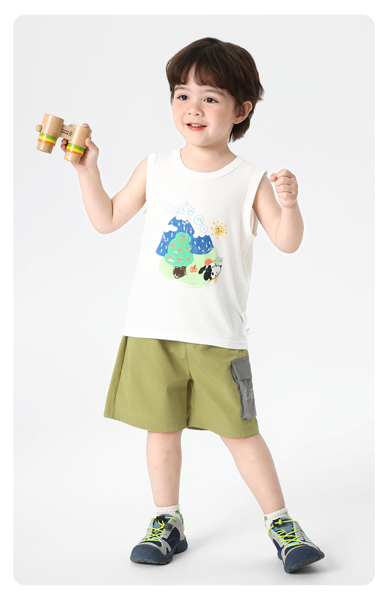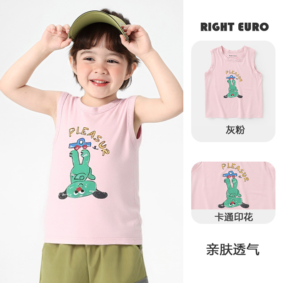 오른쪽 유럽 소년 조끼 여름 2025 새로운 아동복 어린이 아기 작은 소년 민소매 티셔츠 여름 얇은