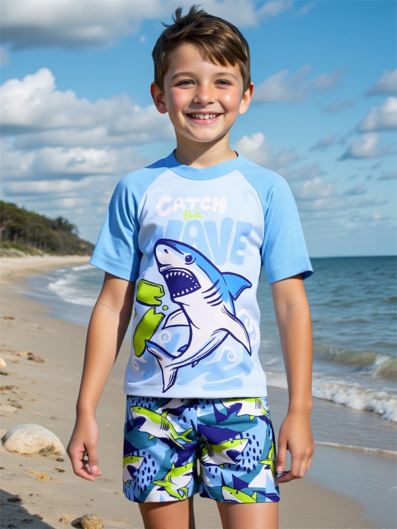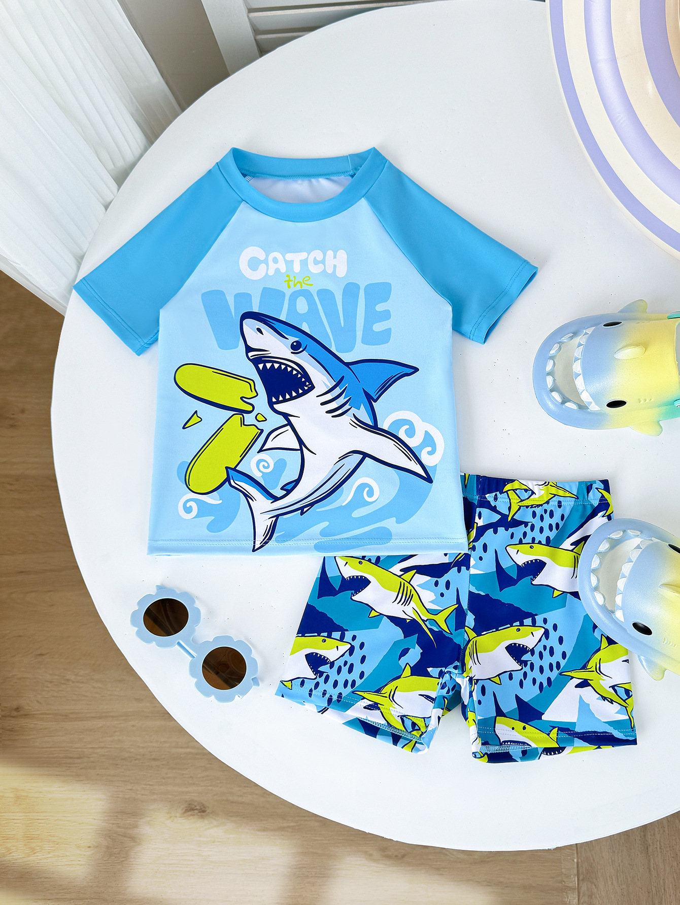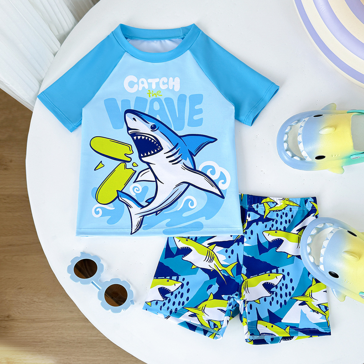 아동 수영복 남성용 반팔 만화 스플릿 중소형 아동용 속건 수영복 소년 온천 수영복 세트 수영복스토어 가기
