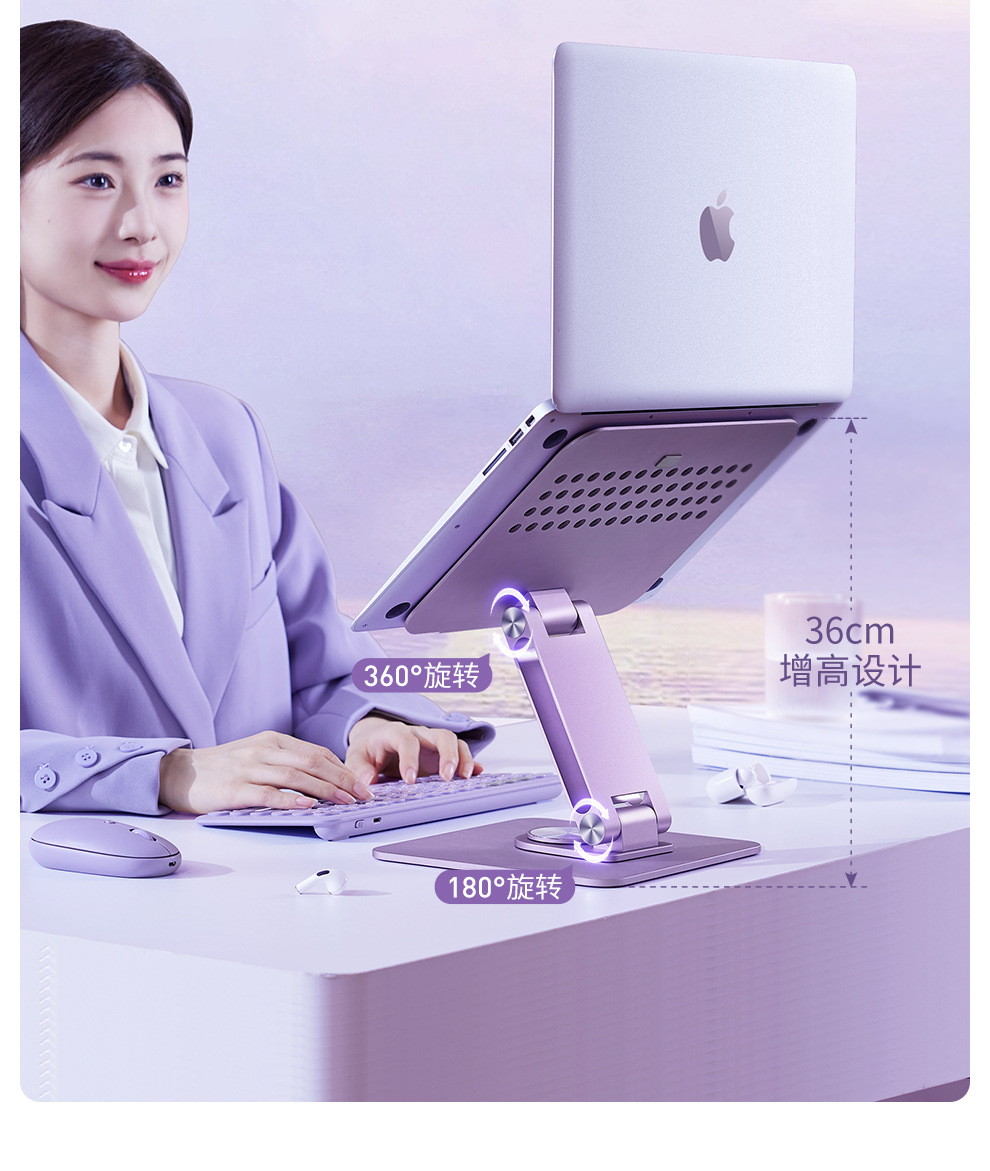 노트북 스탠드 360도 회전 접이식 리프팅 데스크탑 중공 냉각 베이스 오피스 게임 컴퓨터 스탠드
