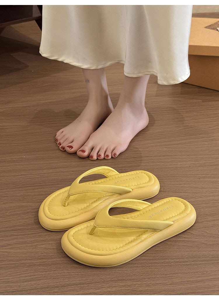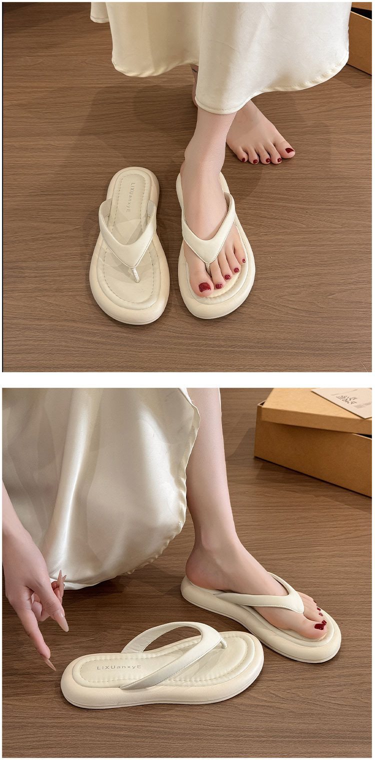 2025 년 여름 발가락 플립 플롭 해변 새 해변 플립 플롭 두꺼운 하단 핏 플립 플롭 슬리퍼 여성용 아우터웨어