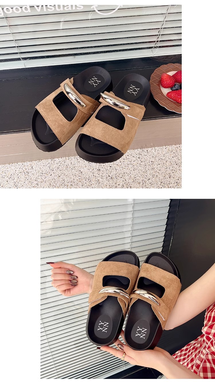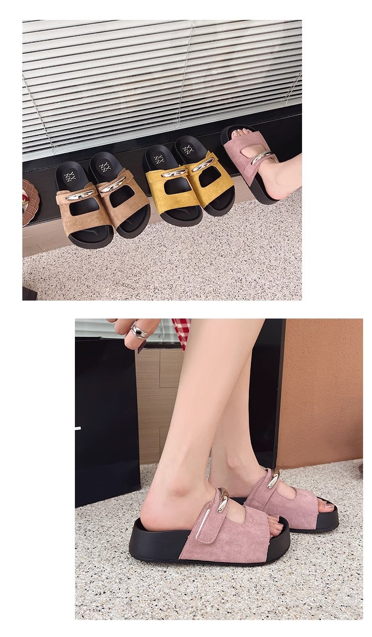 여성을위한 두꺼운 밑창 금속 장식 샌들 여름 2025 새로운 패션 부드러운 밑창 한국어 버전 ins 부드러운 밑창 캐주얼 슬리퍼