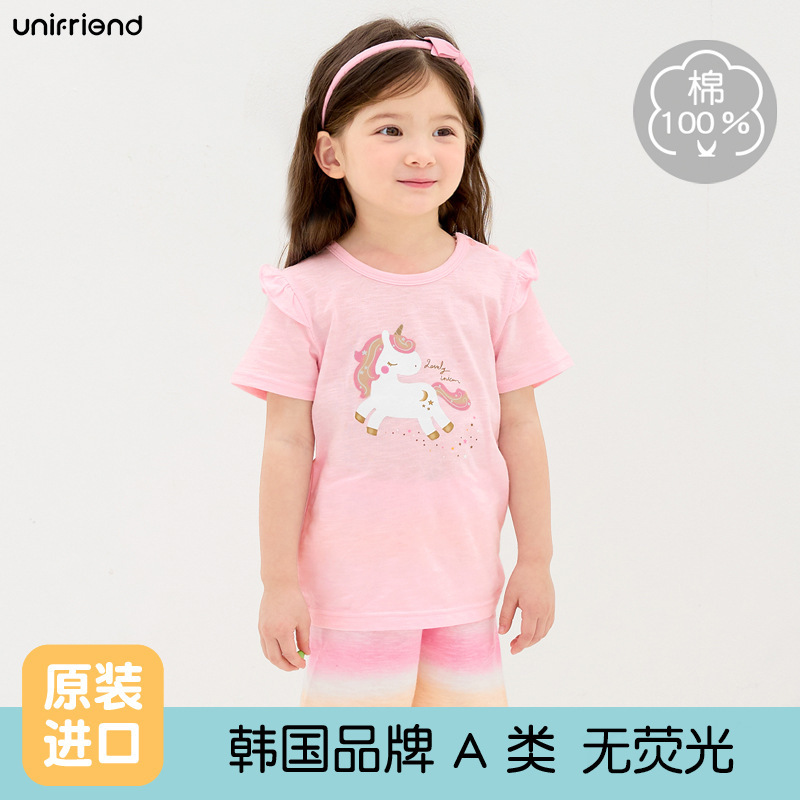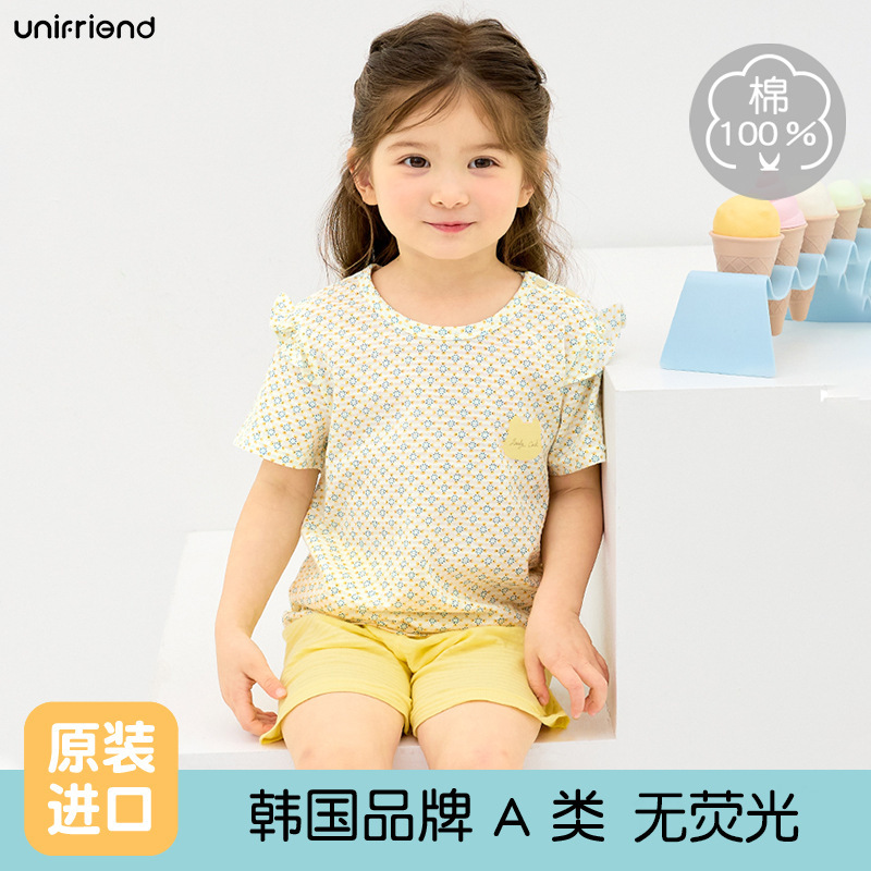 한국 어린이 잠옷 여름 세트 코튼 소년과 소녀 홈 옷 아기 반팔 반바지