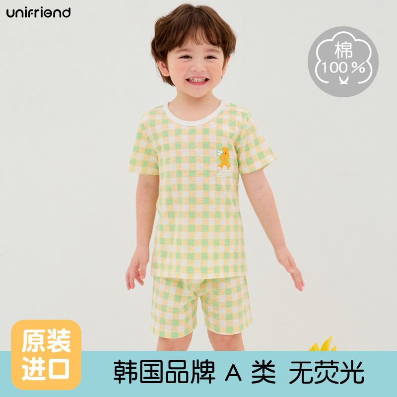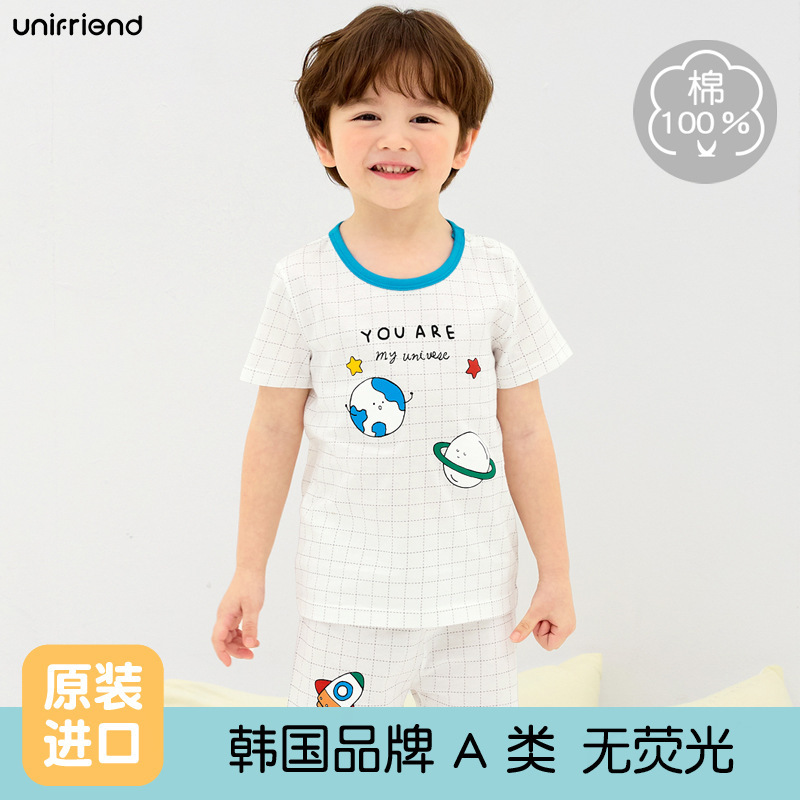한국 어린이 잠옷 여름 세트 코튼 소년과 소녀 홈 옷 아기 반팔 반바지스토어 가기
