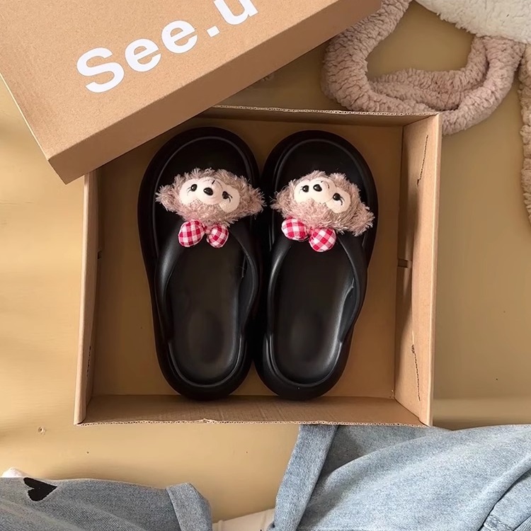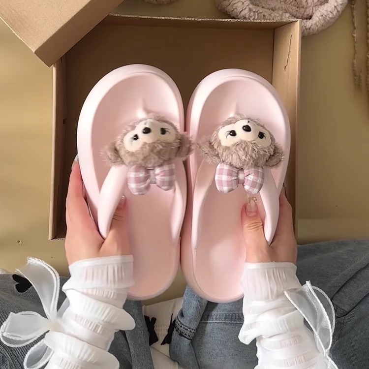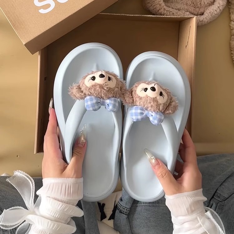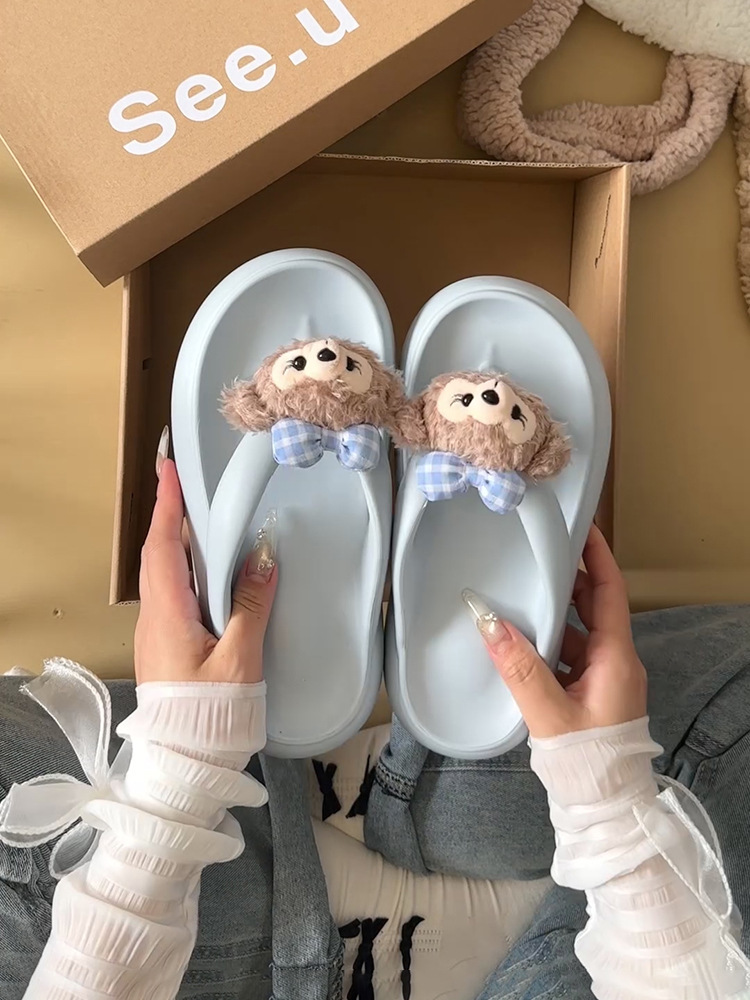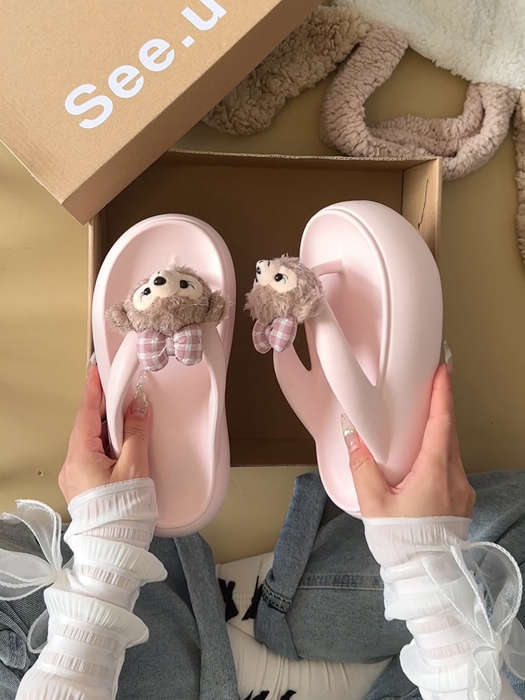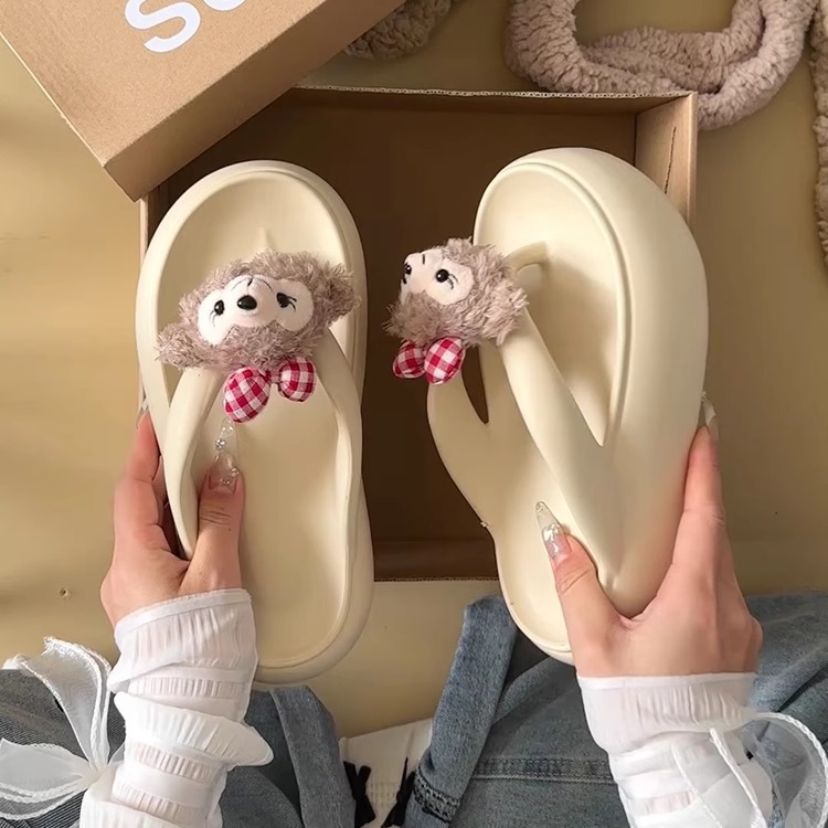 플립 플롭 소녀의 2025 여름 아우터 만화 귀여운 해변 두꺼운 밑바닥 미끄럼 방지 클립 플립 플롭 플랫폼 슬리퍼스토어 가기