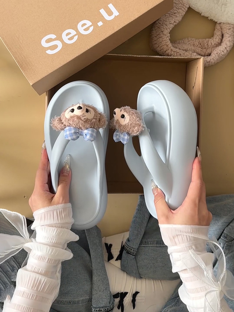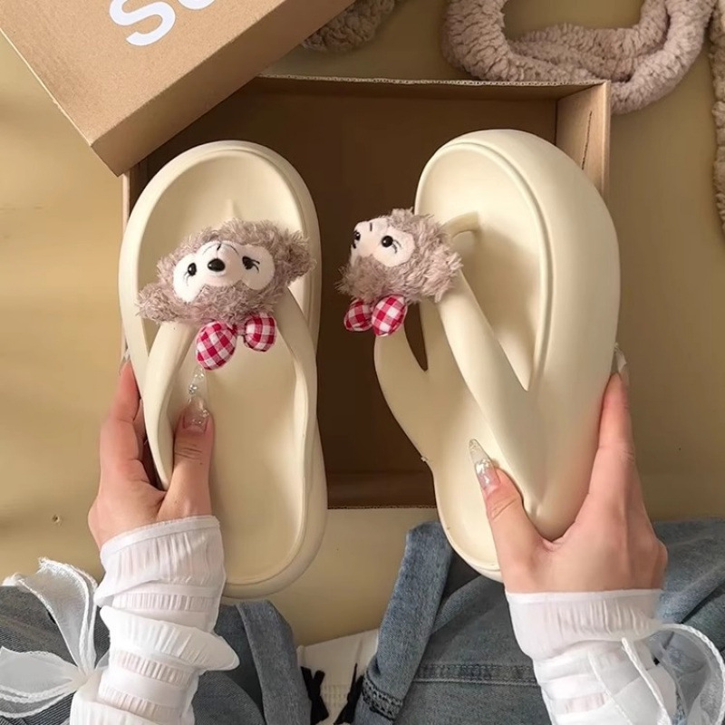 플립 플롭 소녀의 2025 여름 아우터 만화 귀여운 해변 두꺼운 밑바닥 미끄럼 방지 클립 플립 플롭 플랫폼 슬리퍼