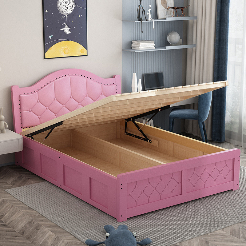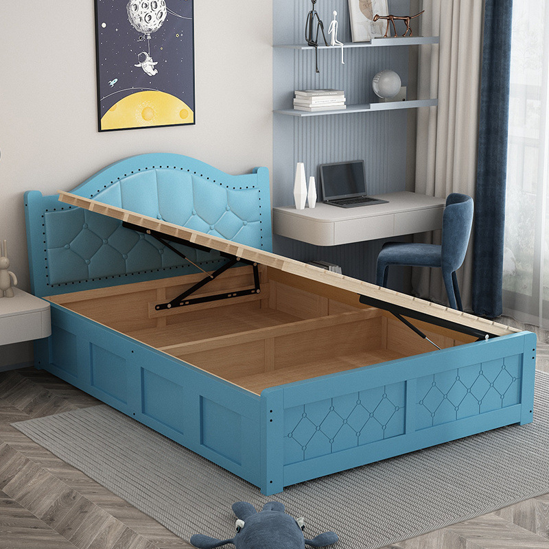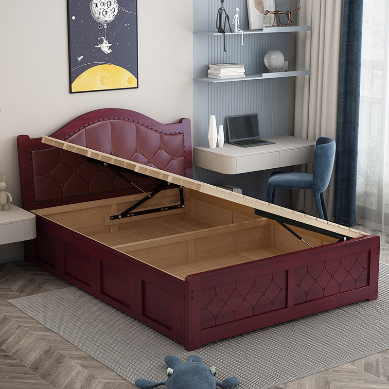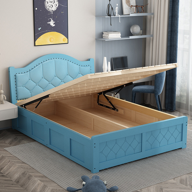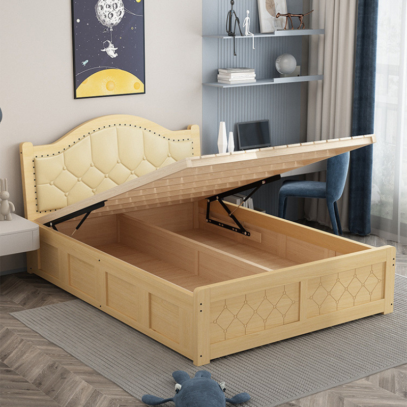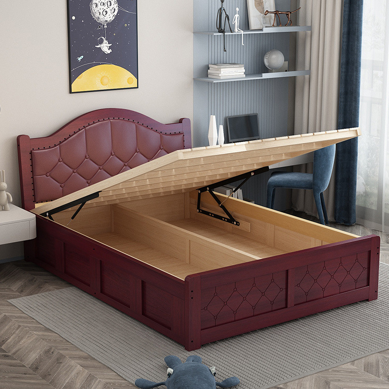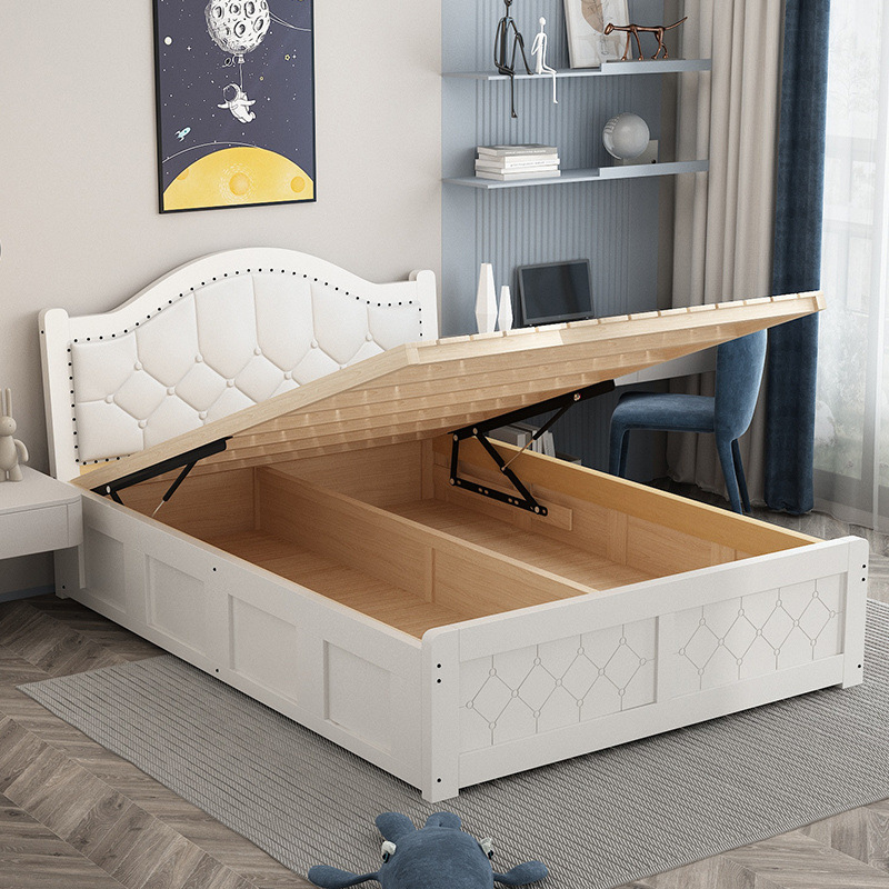 단단한 나무 침대 마스터 침실 흰색 더블 침대 공기압 하이 박스 침대 박스 수납 침대 싱글 침대 현대 간단한 공장 도매