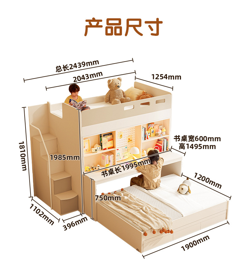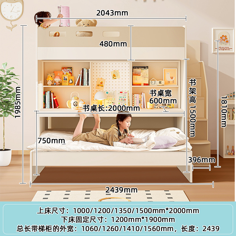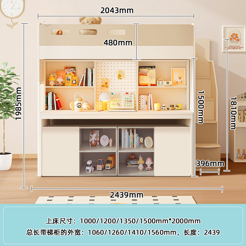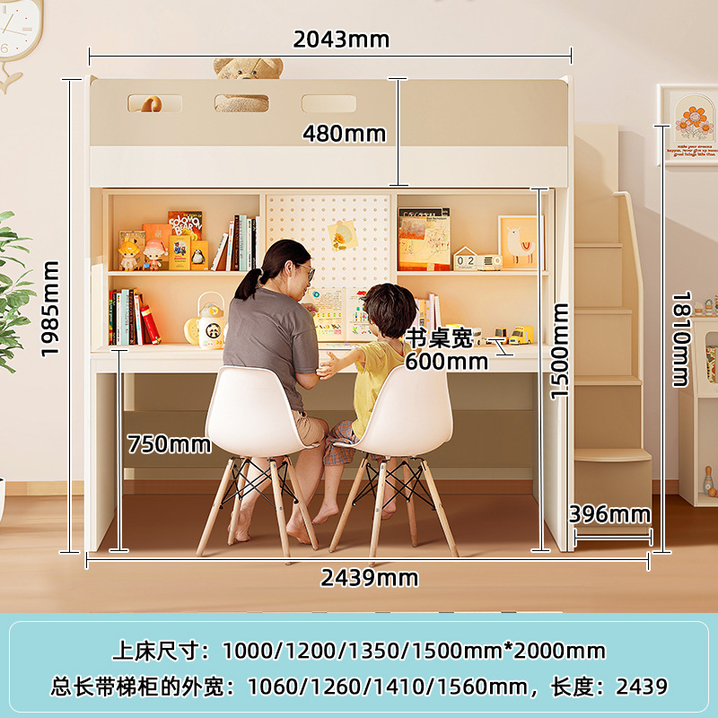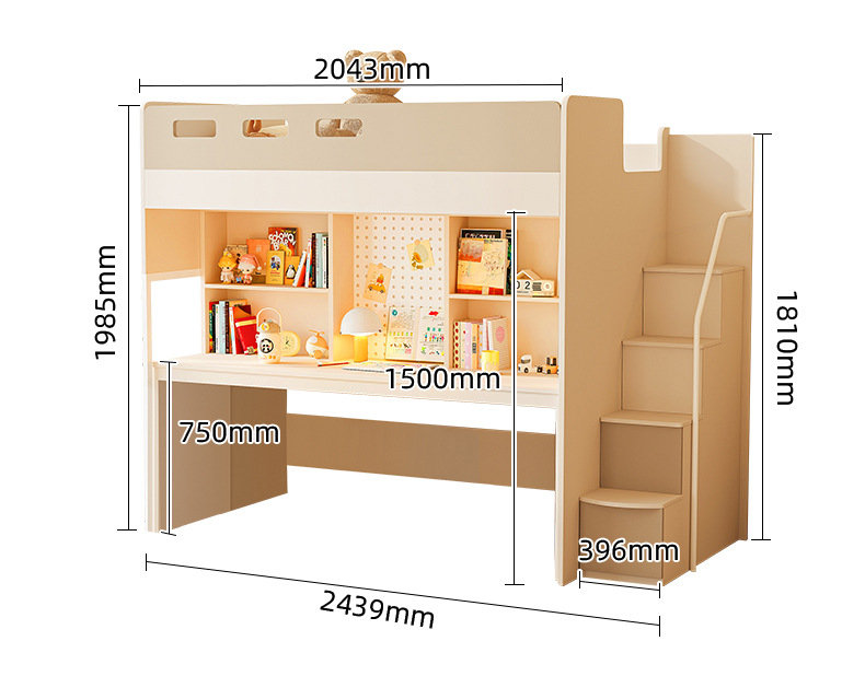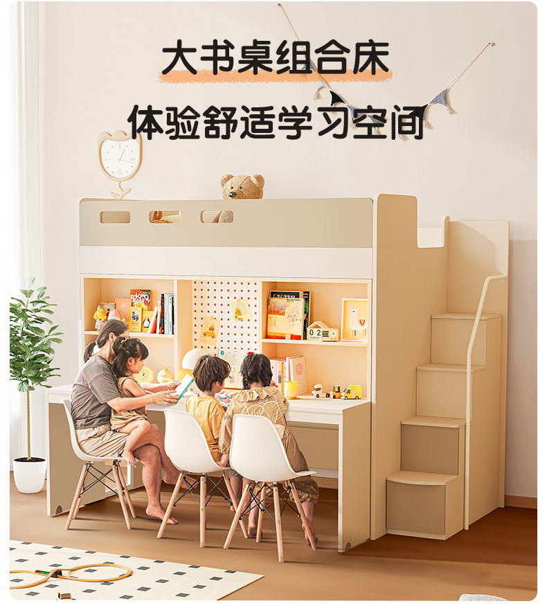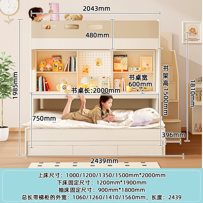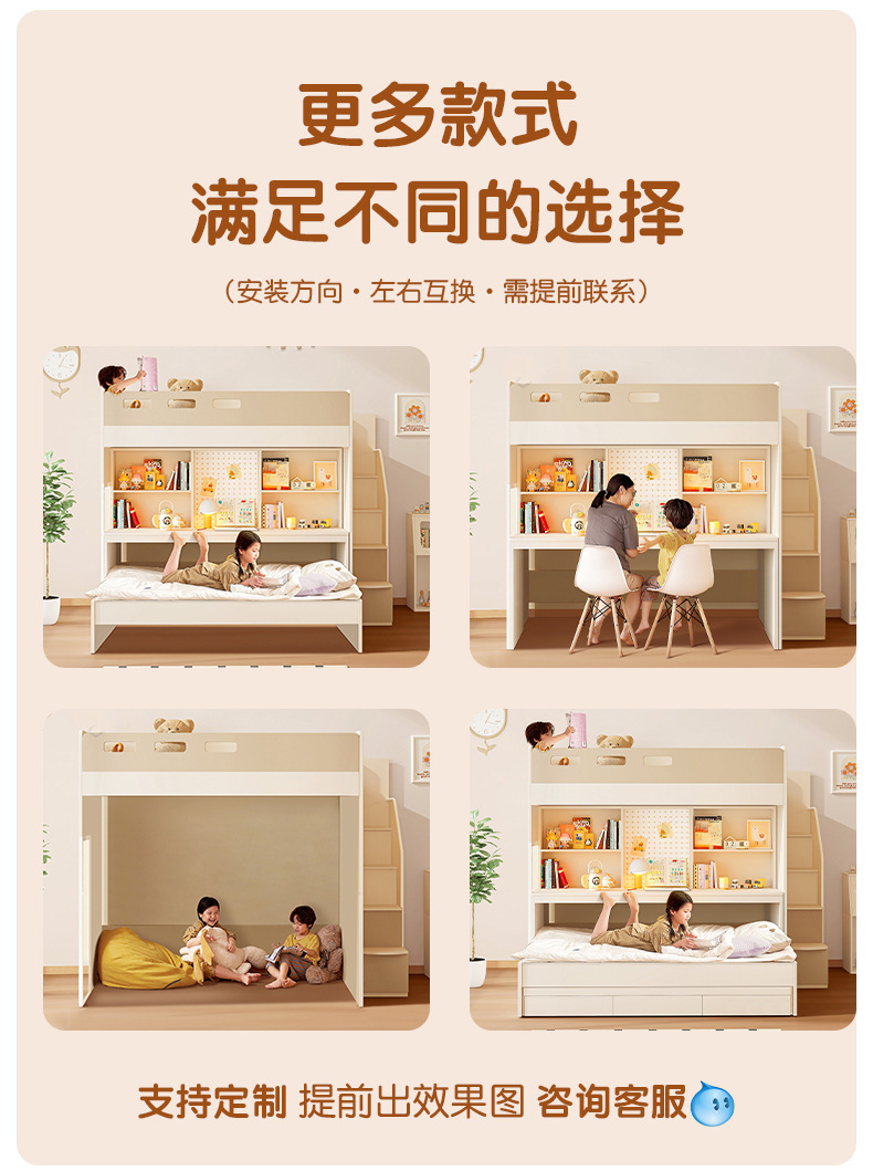 • 침대 프레임 + 사다리 캐비닛 + 하단 침대 + 드래그 침대 + 책상