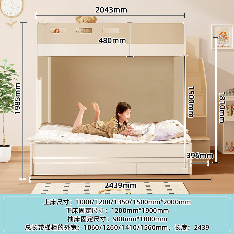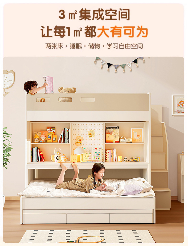 • 침대 프레임 + 사다리 캐비닛 + 하단 침대 + 서랍형 침대 3개