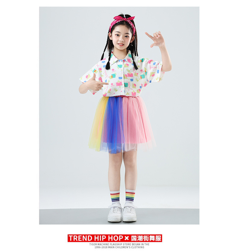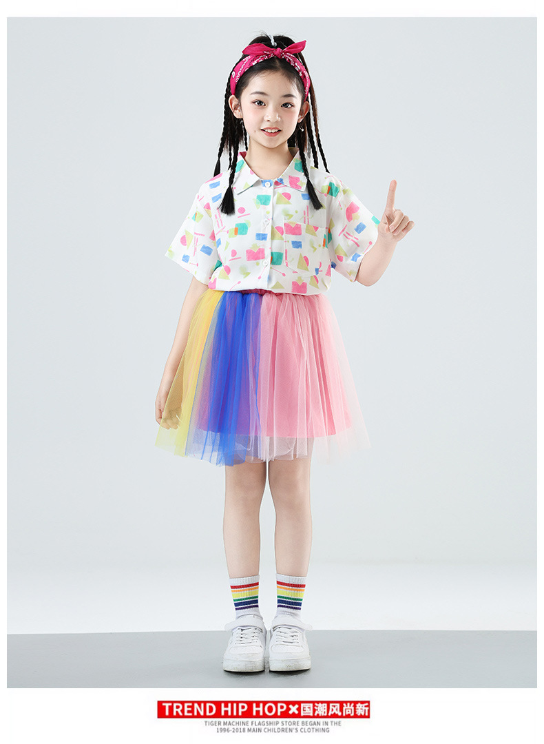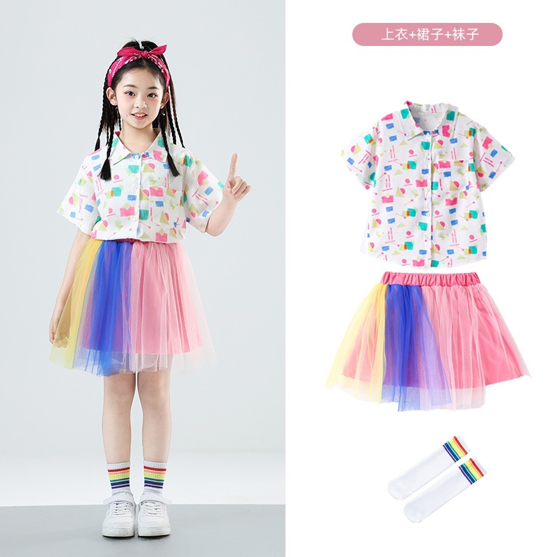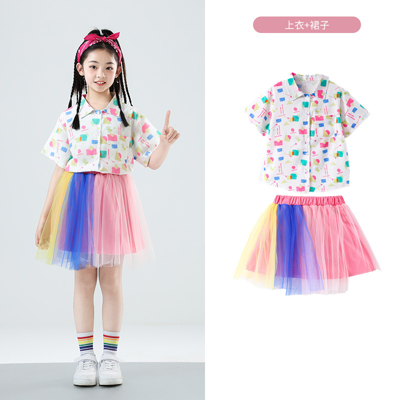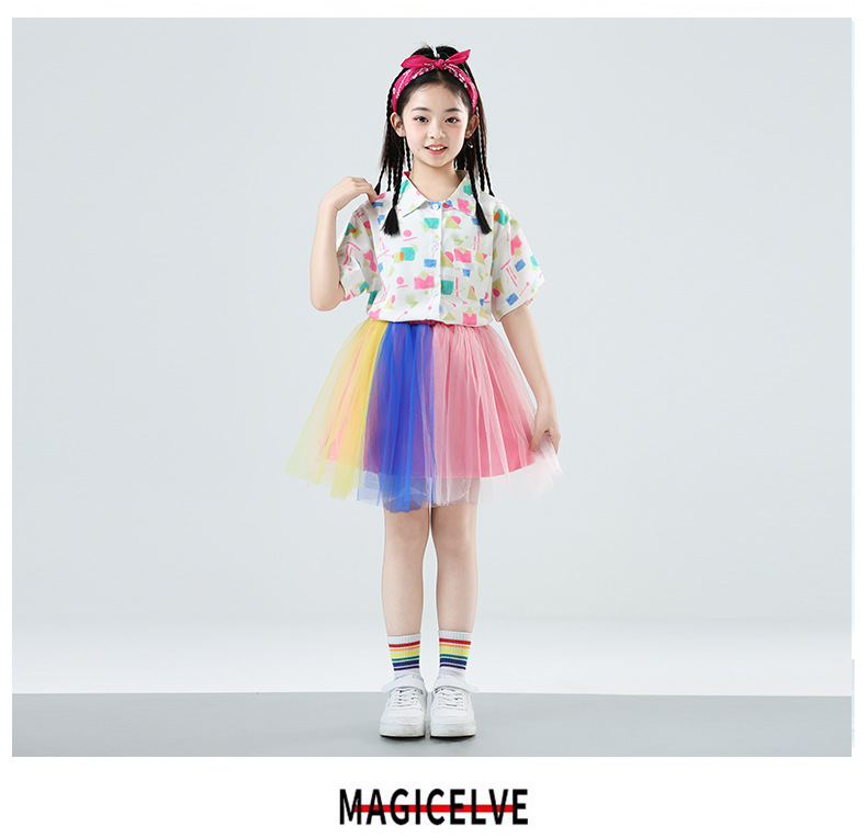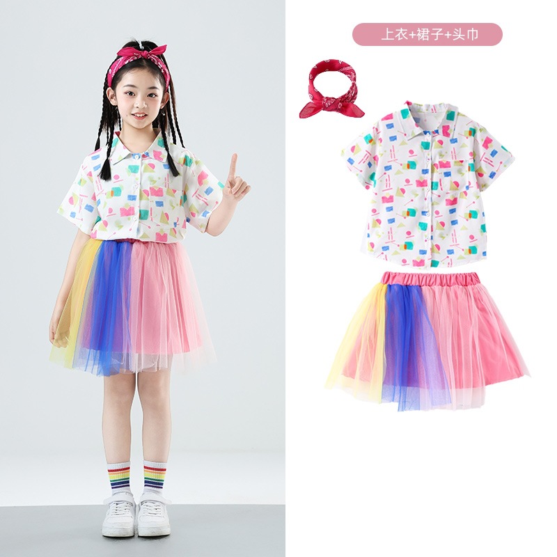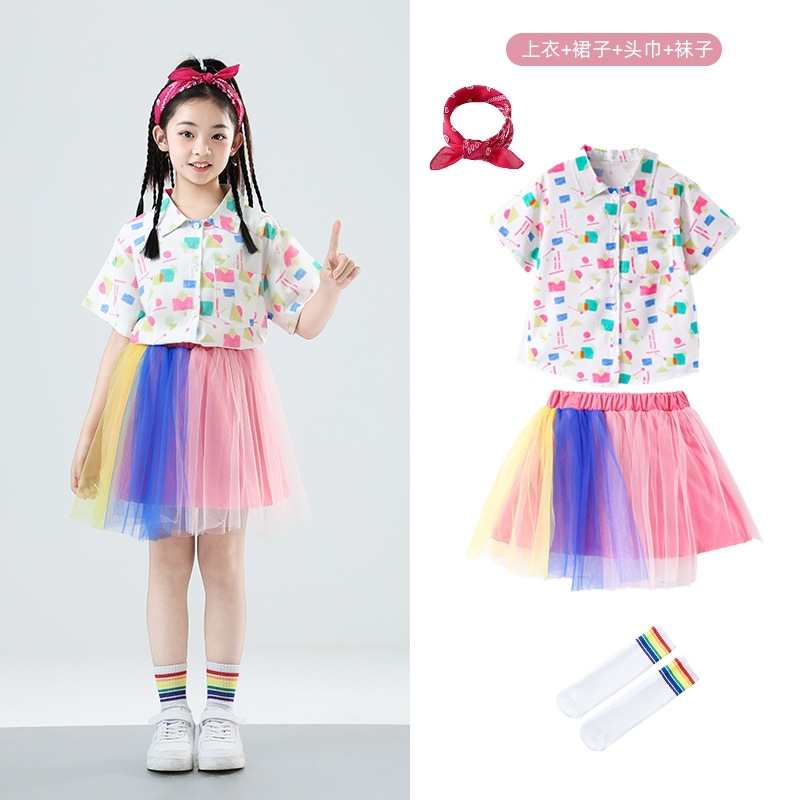 어린이 치어리딩 의상, 초등학생 개회식, 국경일 여아 거즈 스커트, 유치원 작업복 의상