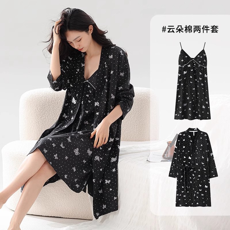 Longsha Nightgress 여성용 여름 얇은 벨트 유방 패드 잠옷 투피스 아이스 실크 슬링 긴 목욕 가운 잠옷 홈 옷스토어 가기